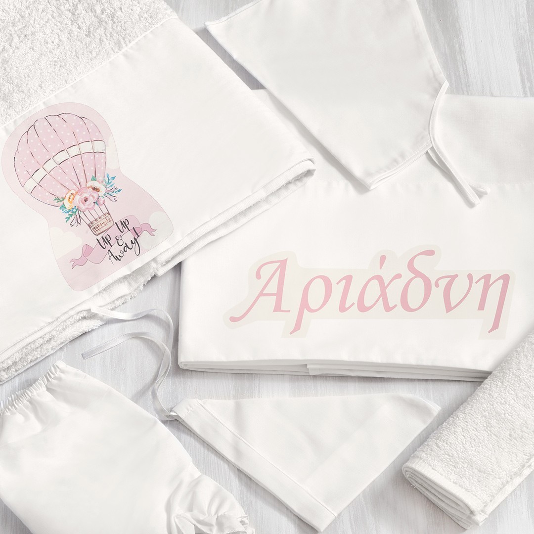 Σετ λαδόπανα βάπτισης για κορίτσι σε εκρού χρώμα , ασορτί με εκτύπωση στο σετ βάπτισης που έχετε επιλέξει.Στο σετ περιλαμβάνεται το λαδόπανο, τα εσώρουχα,η πετσέτα η μεγάλη και η μικρή των χεριών