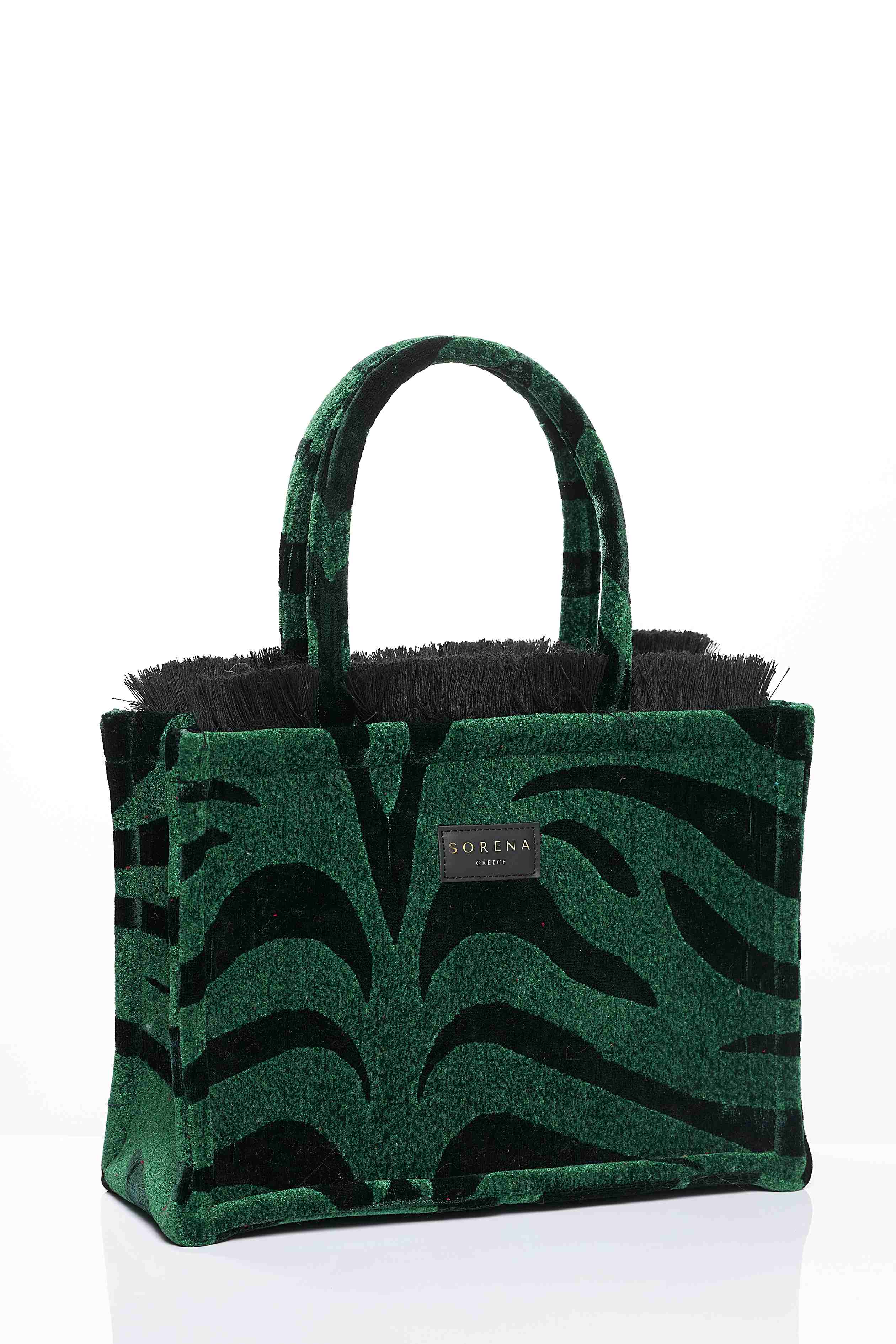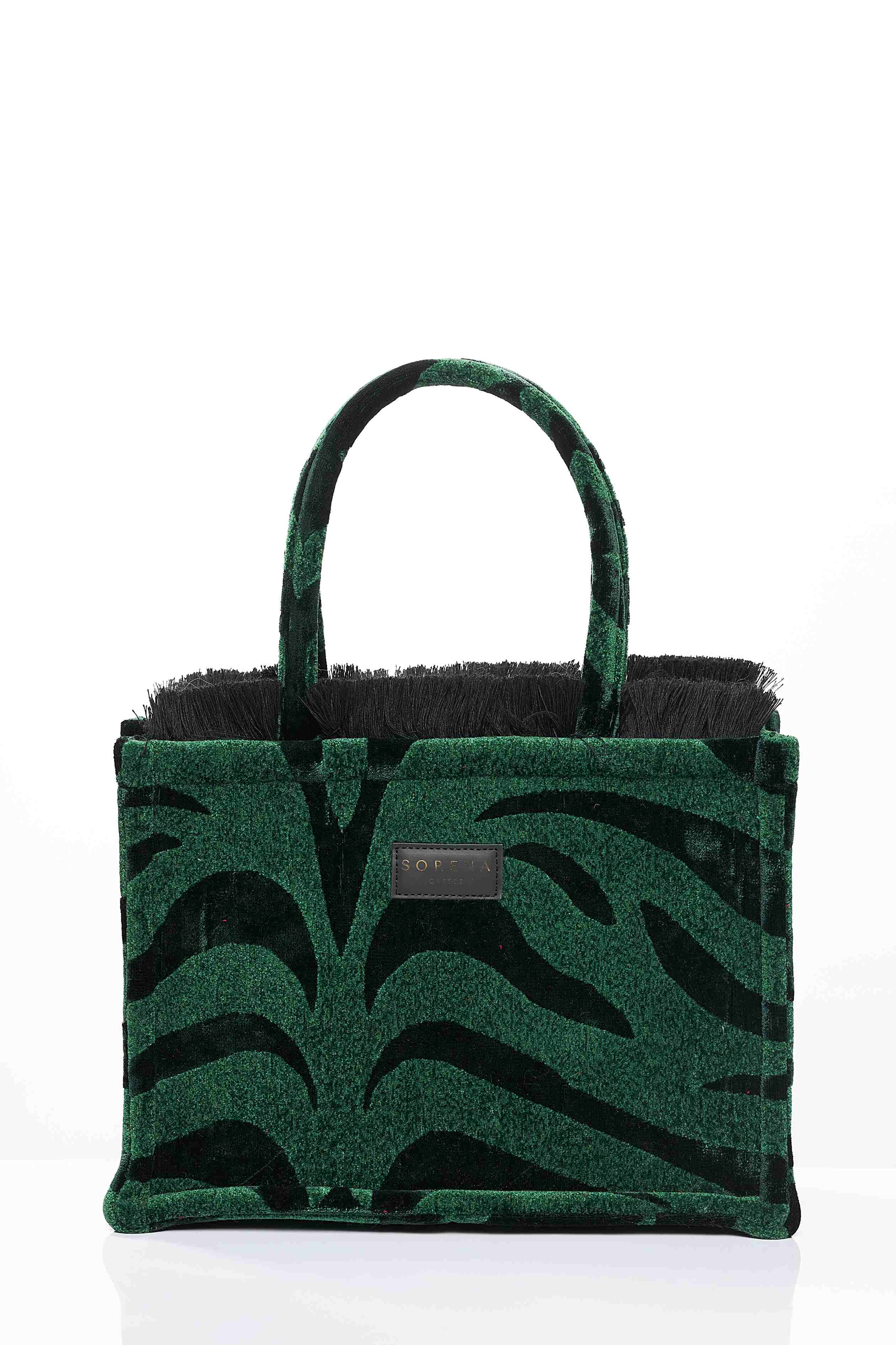 ANIMAL VELVET PETROL MEDIUM TOTE BAG