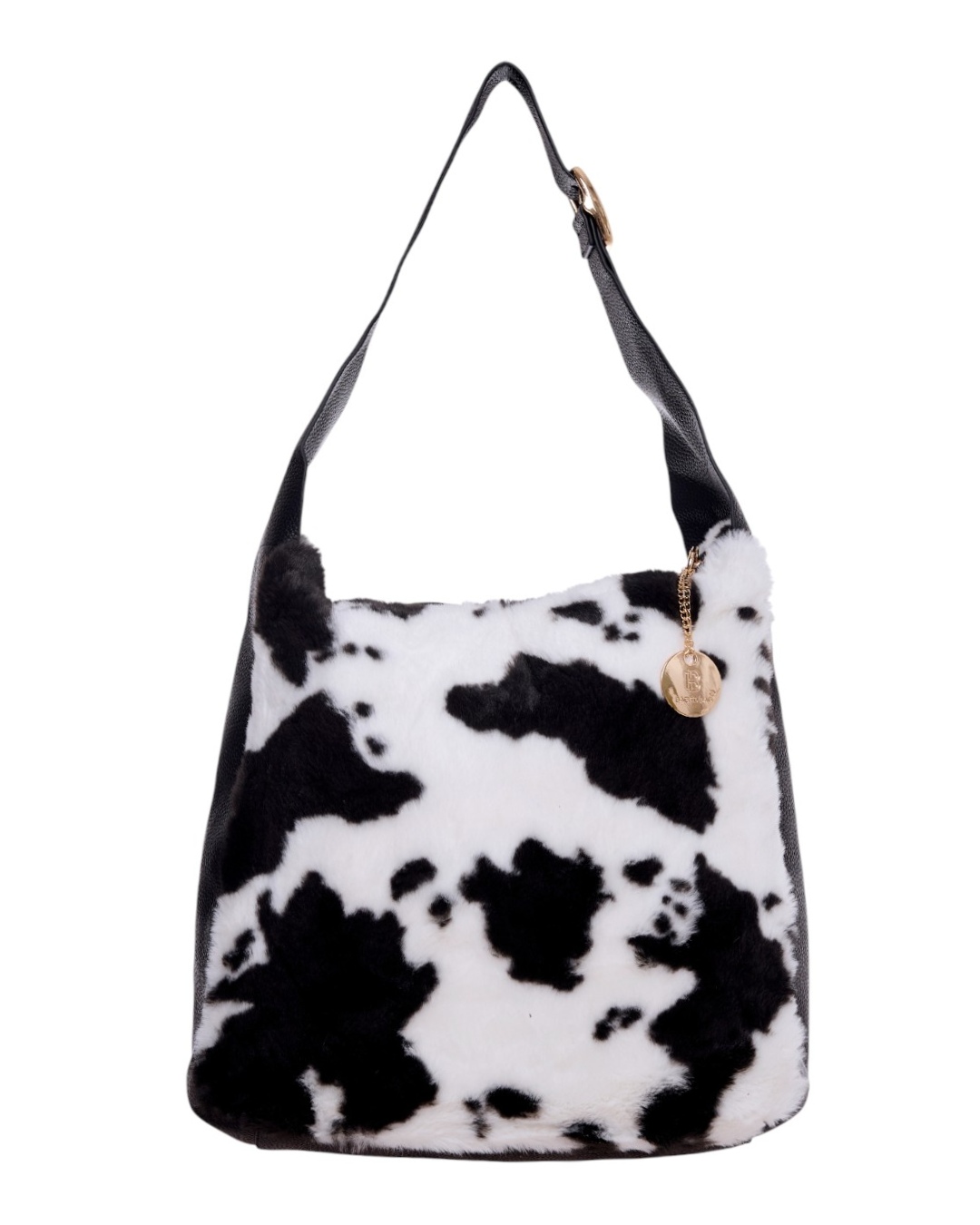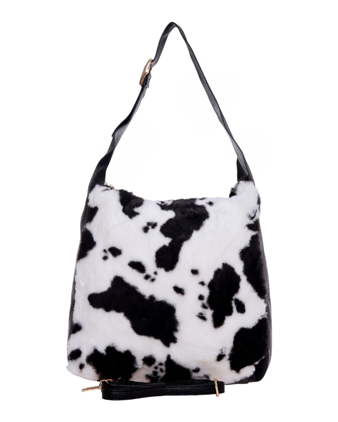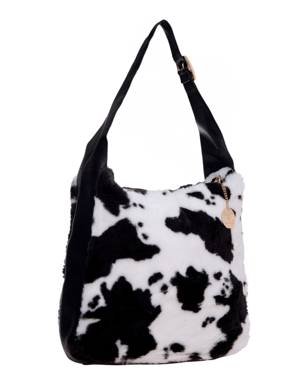 Γούνινη τσάντα ώμου XY-2515 - Ασπρο/Μαύρο