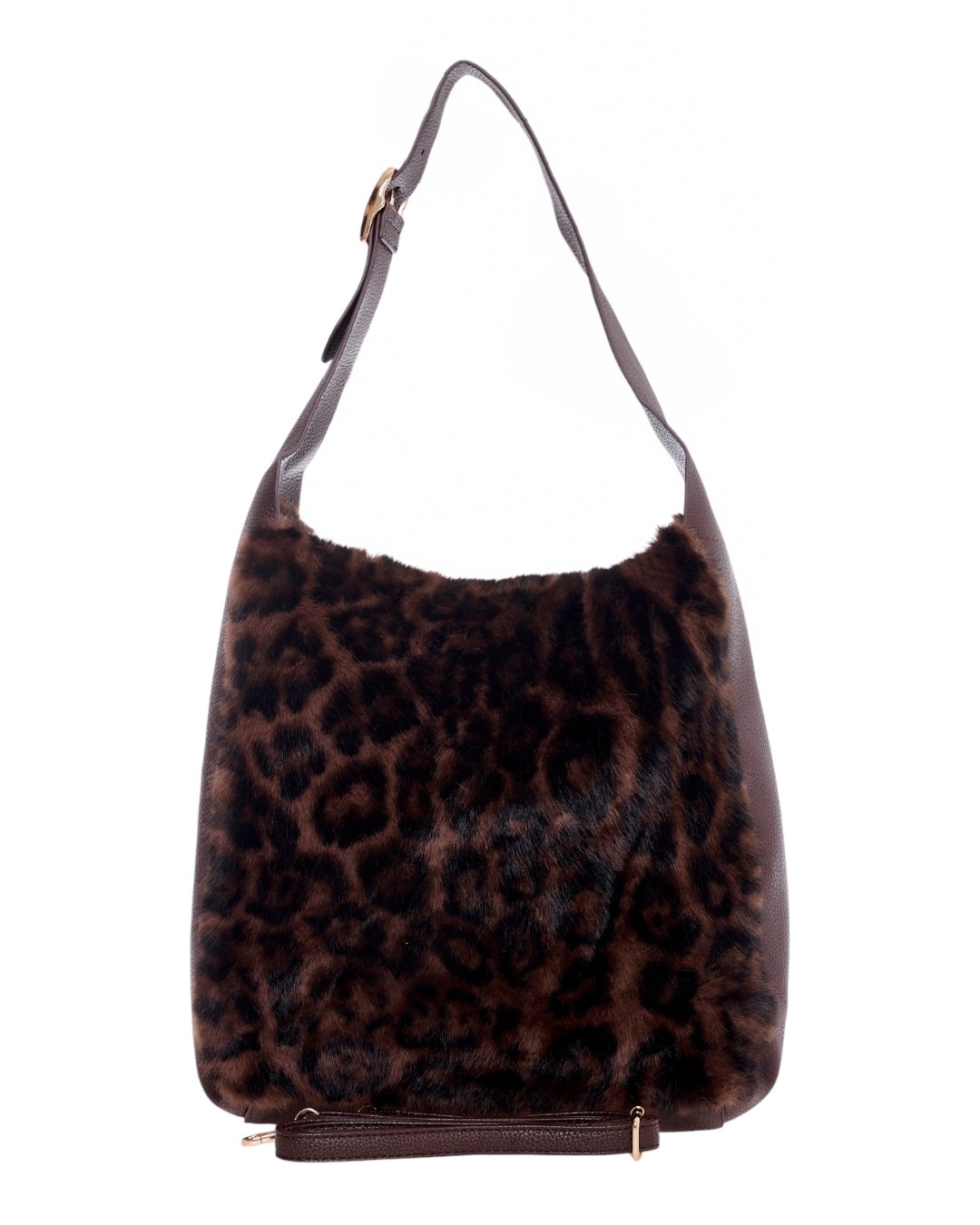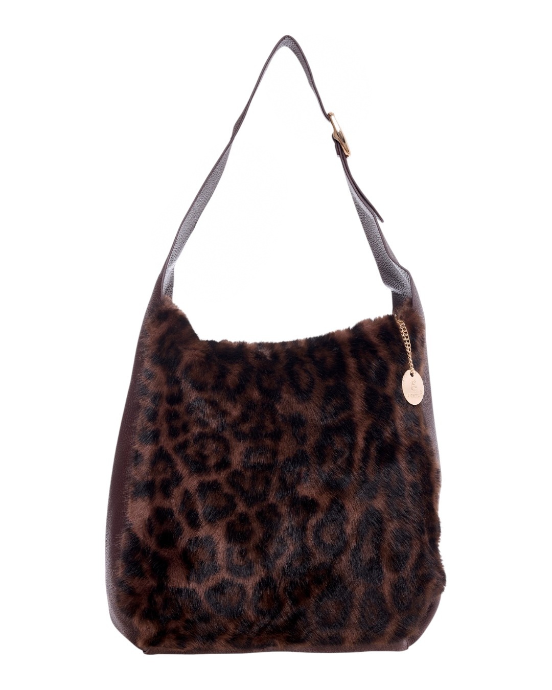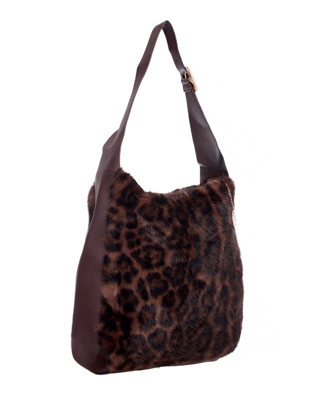 Γούνινη τσάντα ώμου XY-2515 - Σκούρο Καφέ