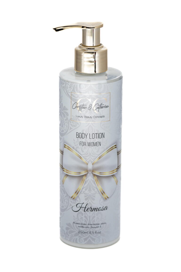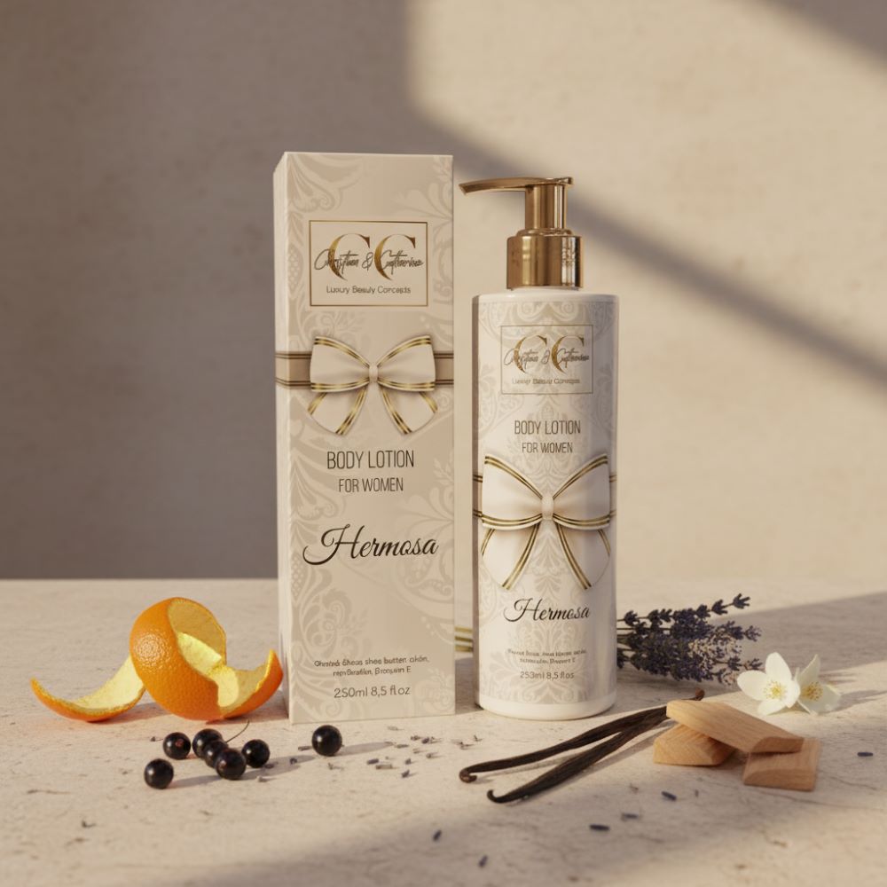 Η κρέμα σώματος Hermosa είναι εμπλουτισμένη με φυτικά έλαια, shea butter, αλόη βέρα, πανθενόλη και βιταμίνη Ε, προσφέροντας βαθιά ενυδάτωση, θρέψη και φυσική λάμψη στο δέρμα.