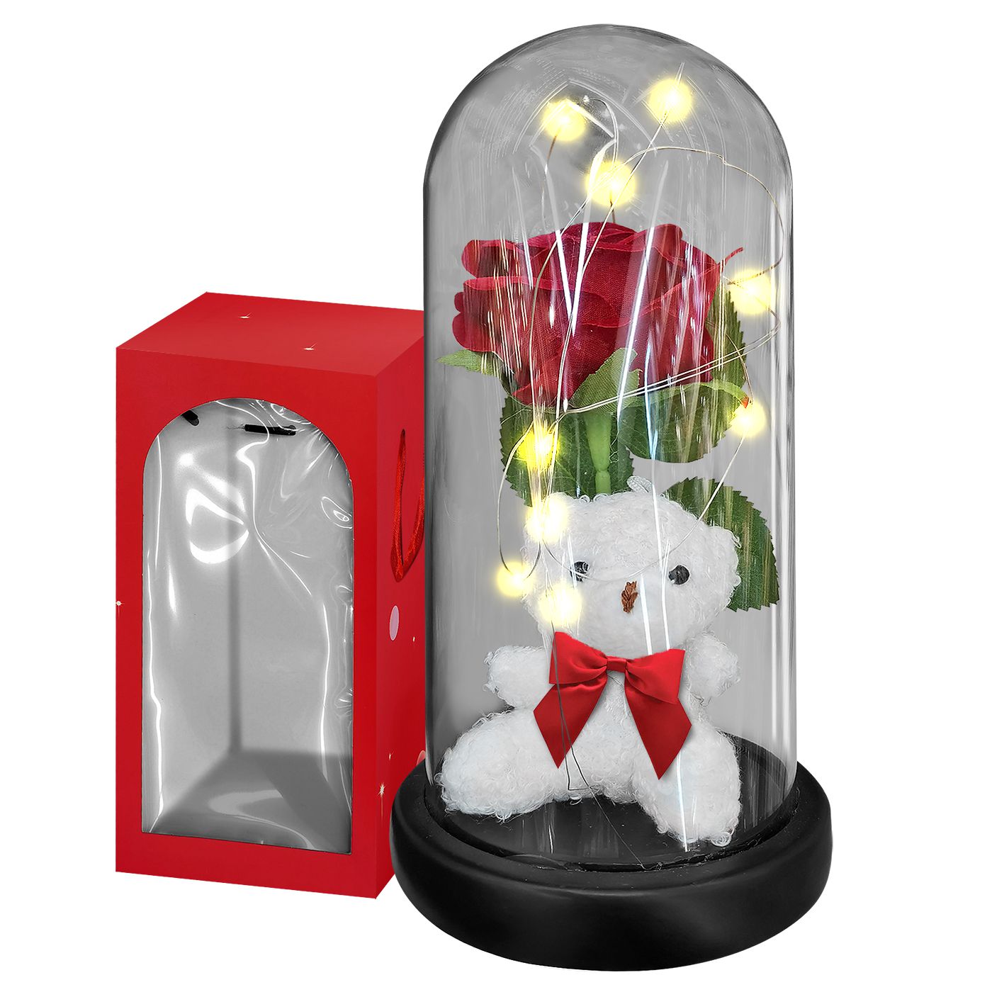 Αρκούδος με Τριαντάφυλλο σε Γυάλα με φως 22x11cm Homie 423110