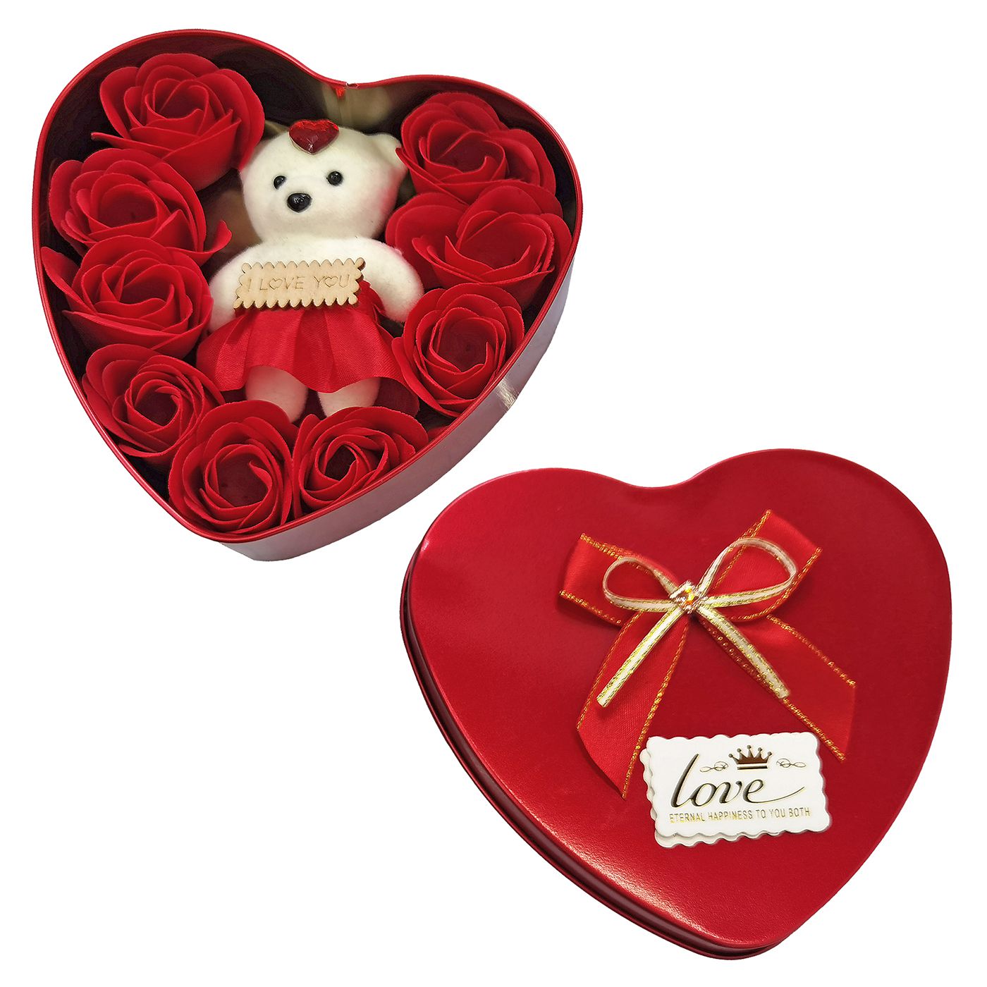 Κουτί Καρδιά Μεγάλη 10 Τριαντάφυλλα & Αρκούδο 16x15x5cm Homie 423071