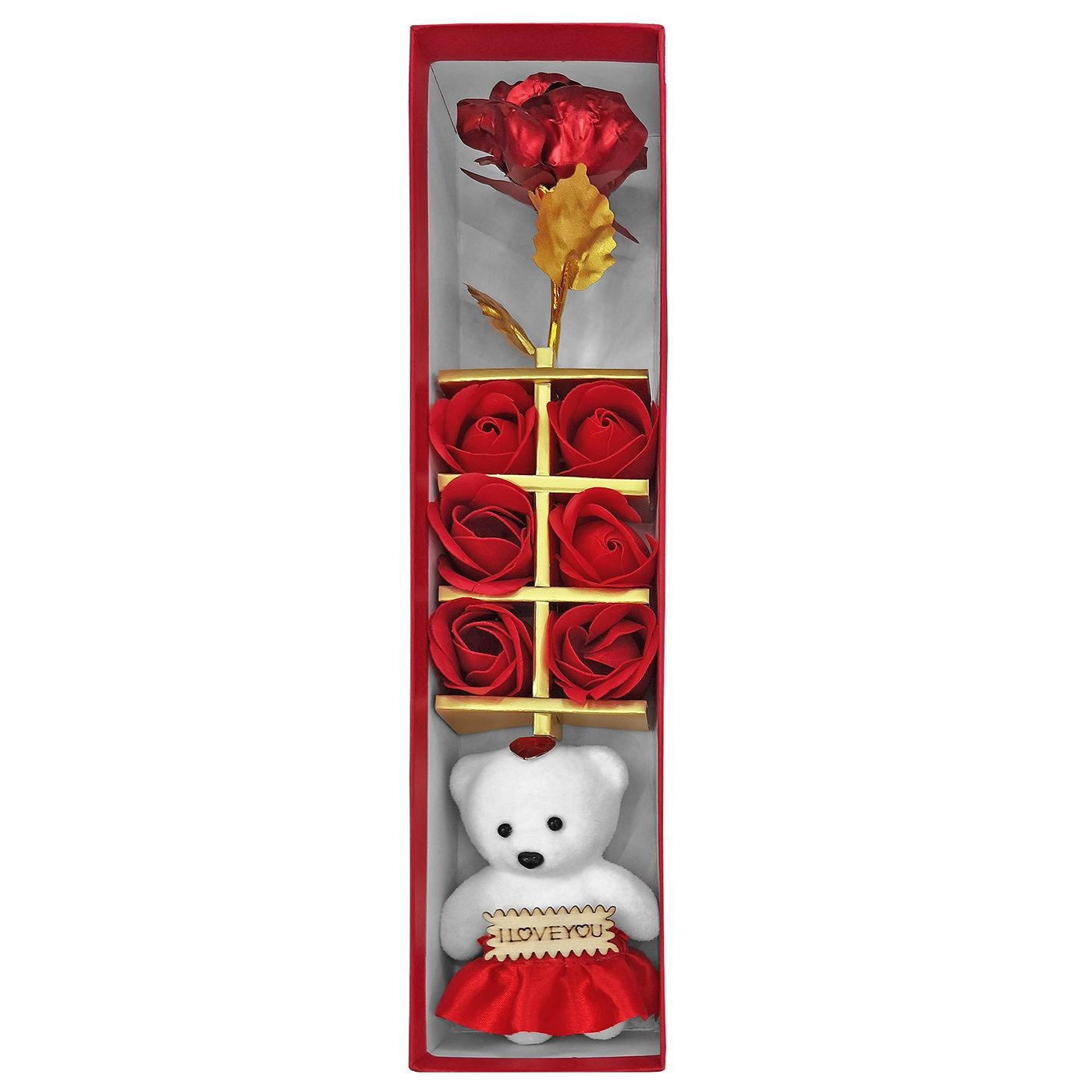 Κουτί Μακρόστενο με Αρκούδο, Τριαντάφυλλα Κόκκινα & Χρυσό 33x7x5cm Homie 423075