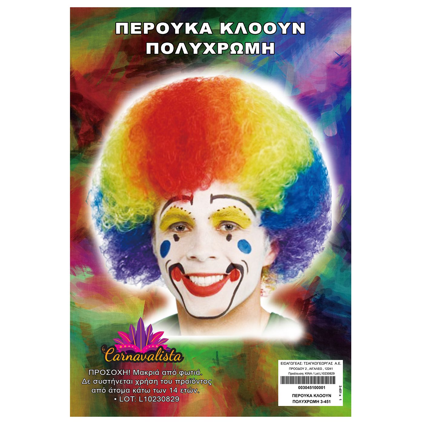 Περούκα Κλόουν Πολύχρωμη Carnavalista 23471
