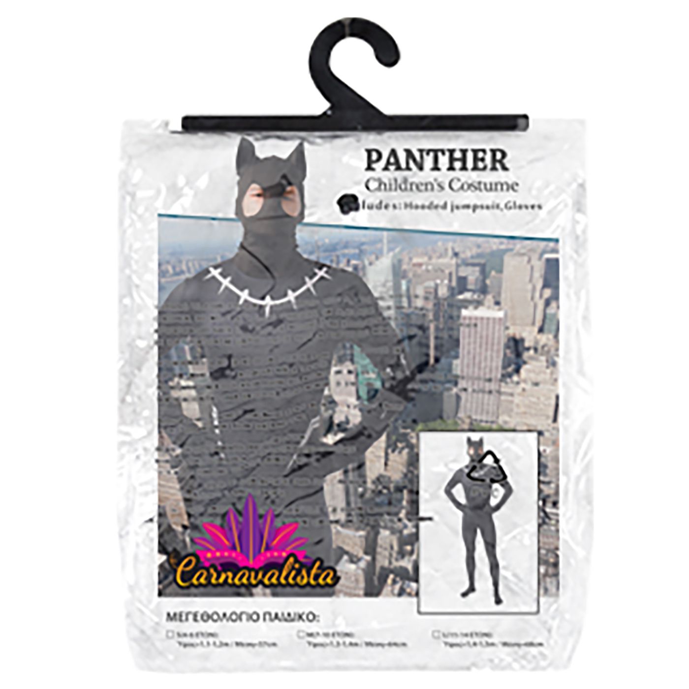 Μαύρος πάνθηρας. Περιέχει:ολόσωμη φόρμα με κουκούλα, γάντια