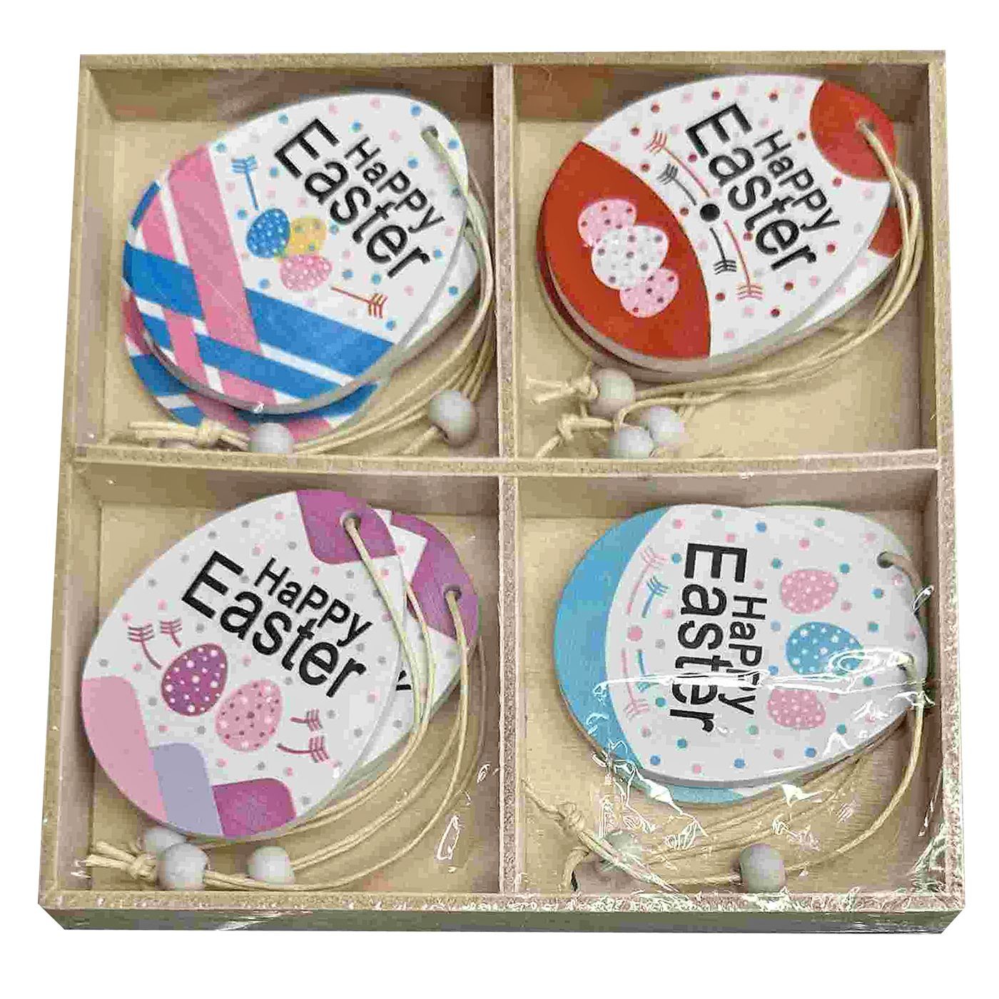 Αυγα Ξύλινα Κρεμαστά Happy Easter σετ=12τεμ Ξύλινο κουτί=13x13cm Bunny's 932204