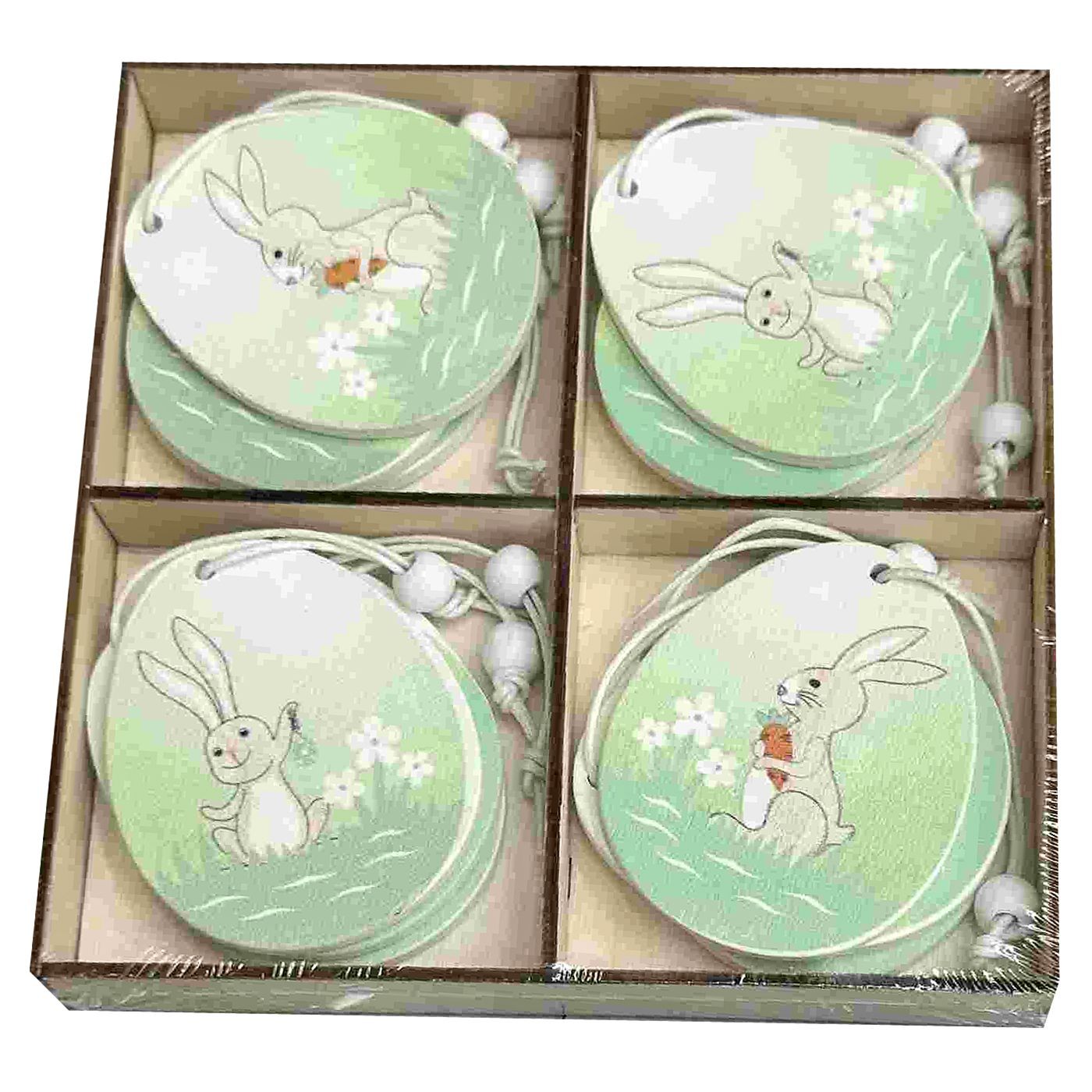 Αυγα Ξύλινα Κρεμαστά Πράσινα με Λαγό σετ=12τεμ Ξύλινο κουτί=13x13cm Bunny's 932205