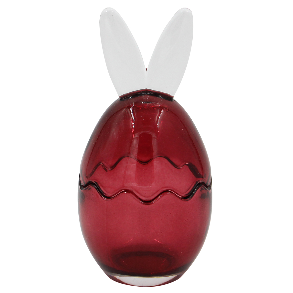 Αυγό διακοσμητικό γυάλινο Φ8Χ17 εκ. Μπορντό με αυτιά Αυτό το διακοσμητικό αυγό από γυαλί, με διάμετρο 8 εκ. και ύψος 17 εκ., διαθέτει μπορντό χρώμα και αυτιά που του δίνουν μια παιχνιδιάρικη και ιδιαίτερη εμφάνιση.