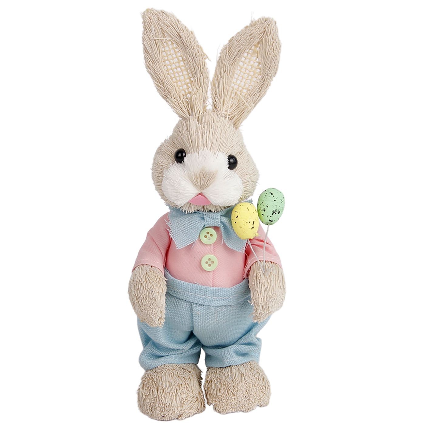 Λαγός Όρθιος Ψάθινος ροζ Πουκάμισο & Παπιγιόν Κρατάει Αυγά 23x8x8cm Bunny's 932301