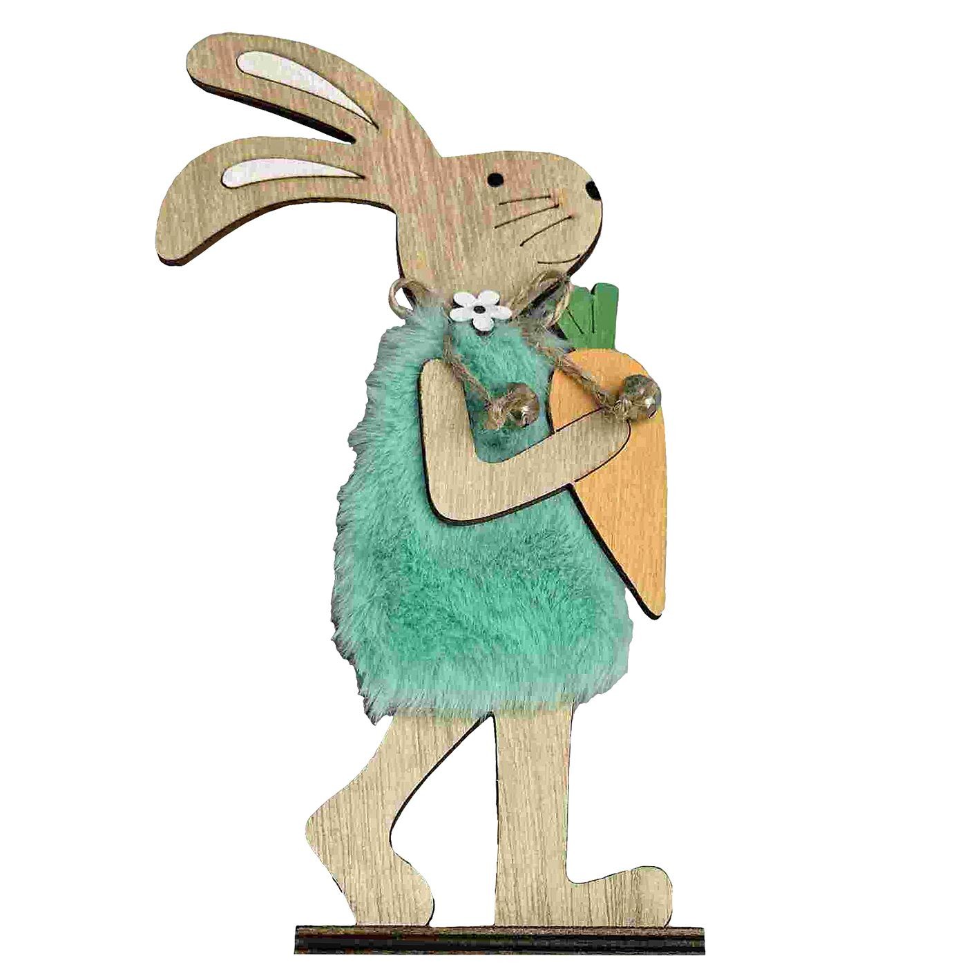 Λαγός Ξύλινος Διακοσμητικός με Γούνα Τυρκουάζ & Καρότο 25x8cm Bunny's 932201