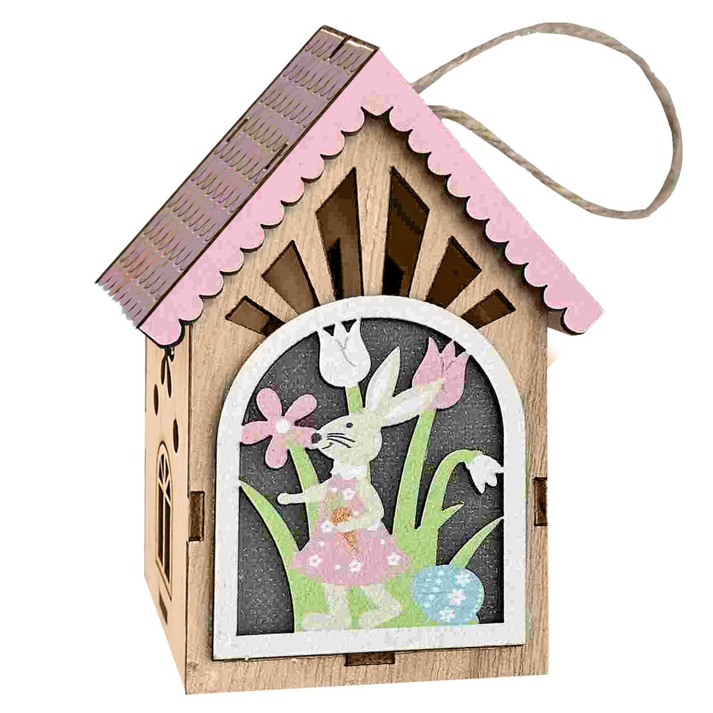 Σπιτάκι Κρεμαστό ροζ Σκεπή & Λαγός 11x8x6cm Bunny's 932197