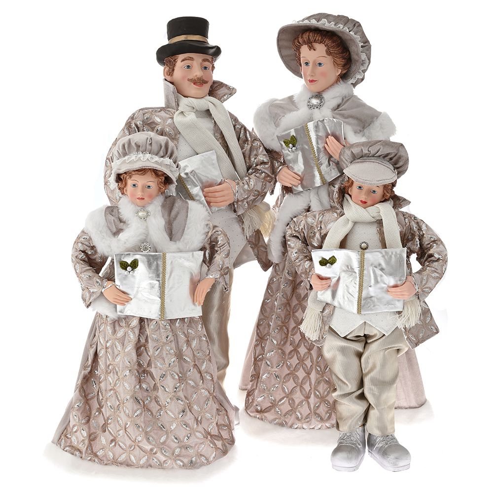 Βελούδινη οικογένεια 4 τεμαχίων που ψέλνει τα κάλαντα. Δεν έχει ήχο, ούτε κίνηση. Αποτελείται απο 4 ξεχωριστές φιγούρες. Τα παιδάκια 75εκ και το ζευγάρι 95εκ