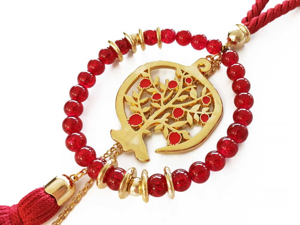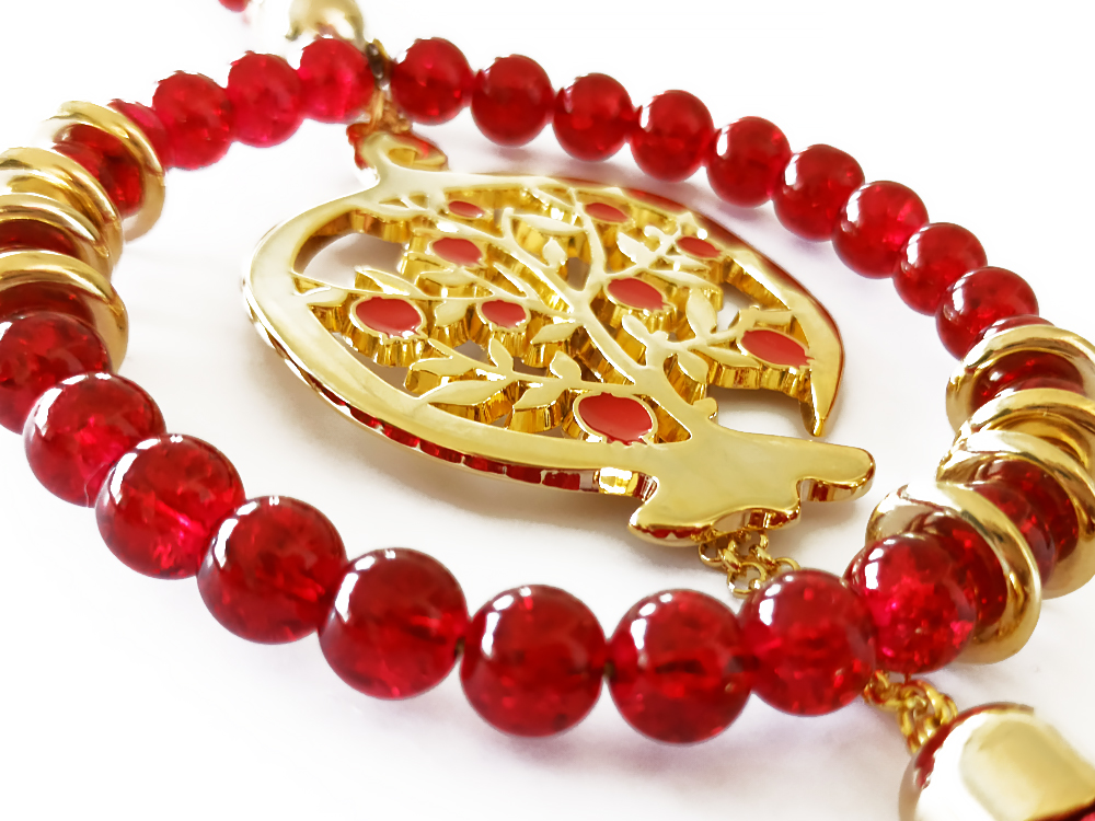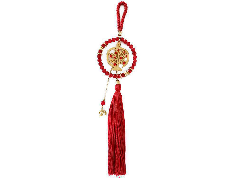 Κρεμαστό γούρι κόκκινο με χρυσό ρόδι