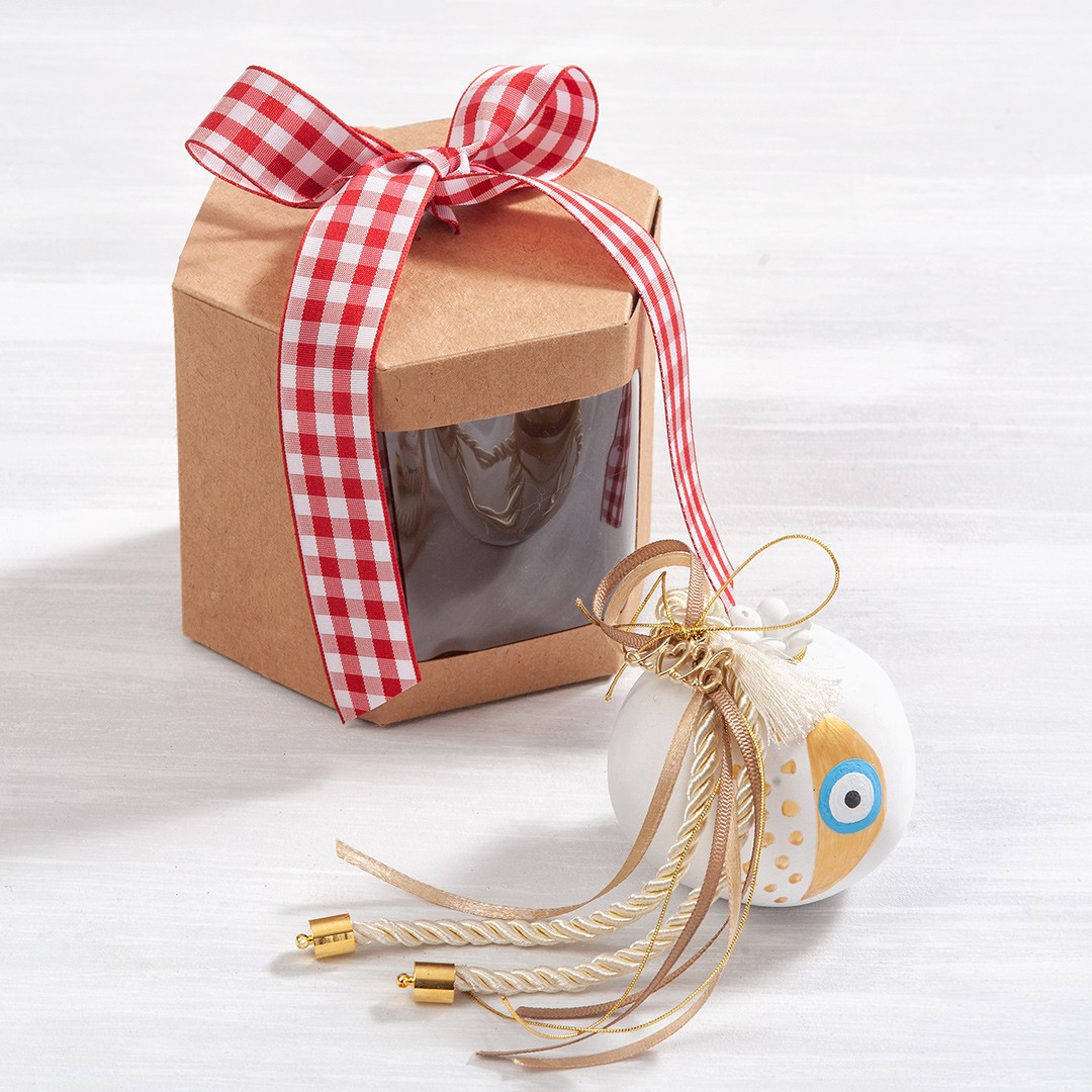 Χριστουγεννιάτικο γούρι γύψινο λευκό ρόδι. Είναι ζωγραφιστό με σιελ μάτι και τους σπόρους του ροδιού σε χρυσές αποχρώσεις. Στην τιμή περιλαμβάνεται το χάρτινο κουτί δώρου που είναι τοποθετημένο το γούρι και η ετικέτα αποστολής.