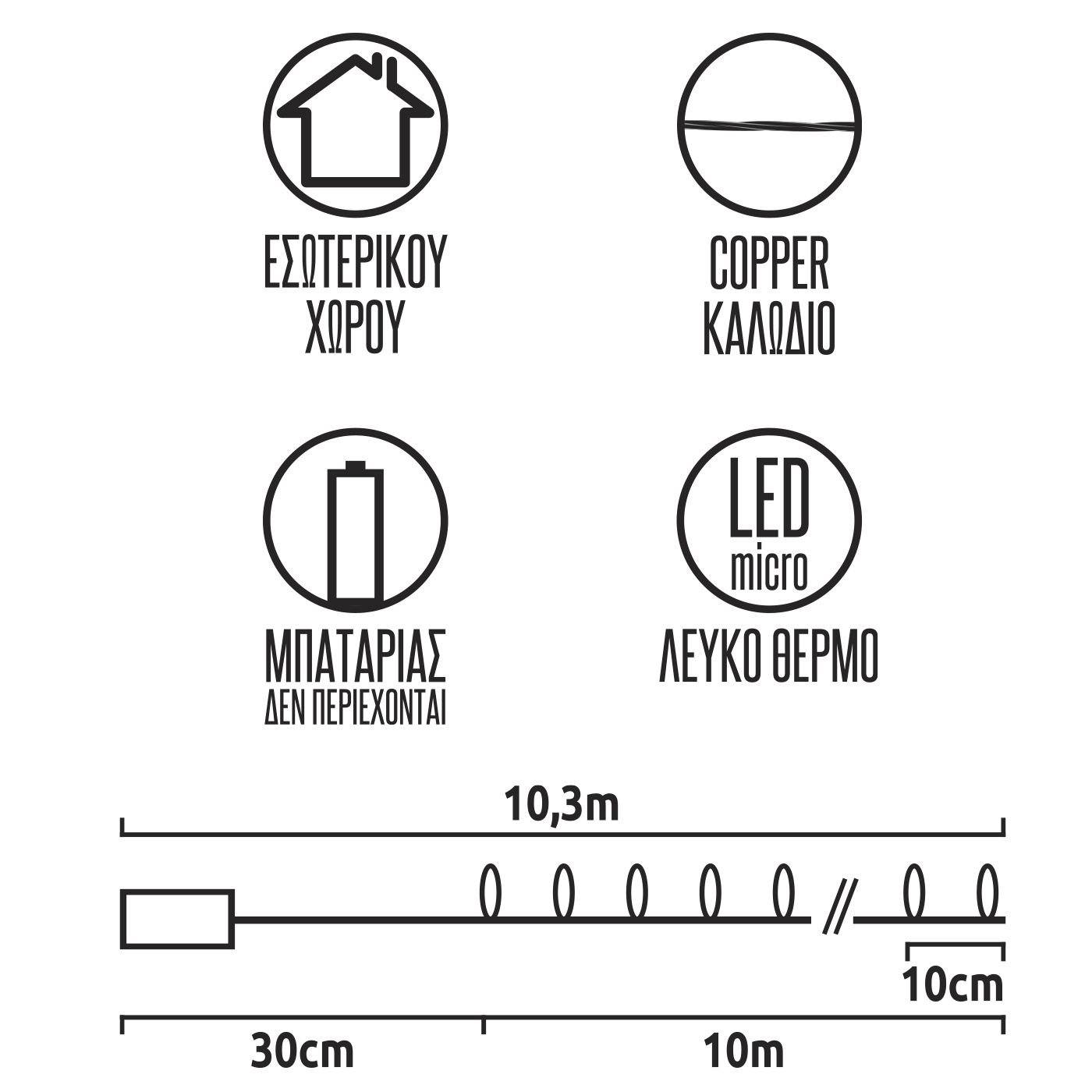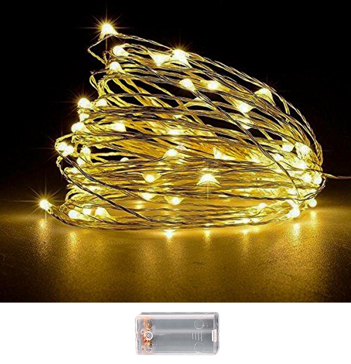 100 LED μπαταρίας λευκό θερμό, σταθερού φωτισμού. Για εσωτερικό χώρο. Με χάλκινο καλώδιο. }οι μπαταρίες 2AA δε περιέχονται 10,3m