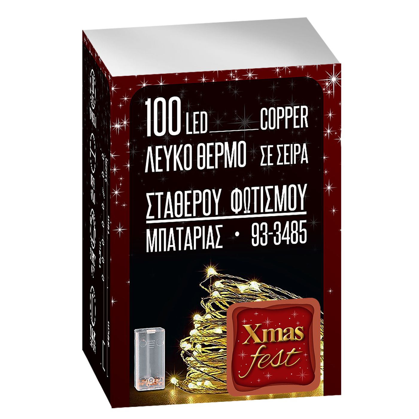 100 Λαμπάκια LED Copper Μπαταρίας Λευκό Θερμό σε Σειρά Σταθερά IP20 10,3m Xmasfest 1133505