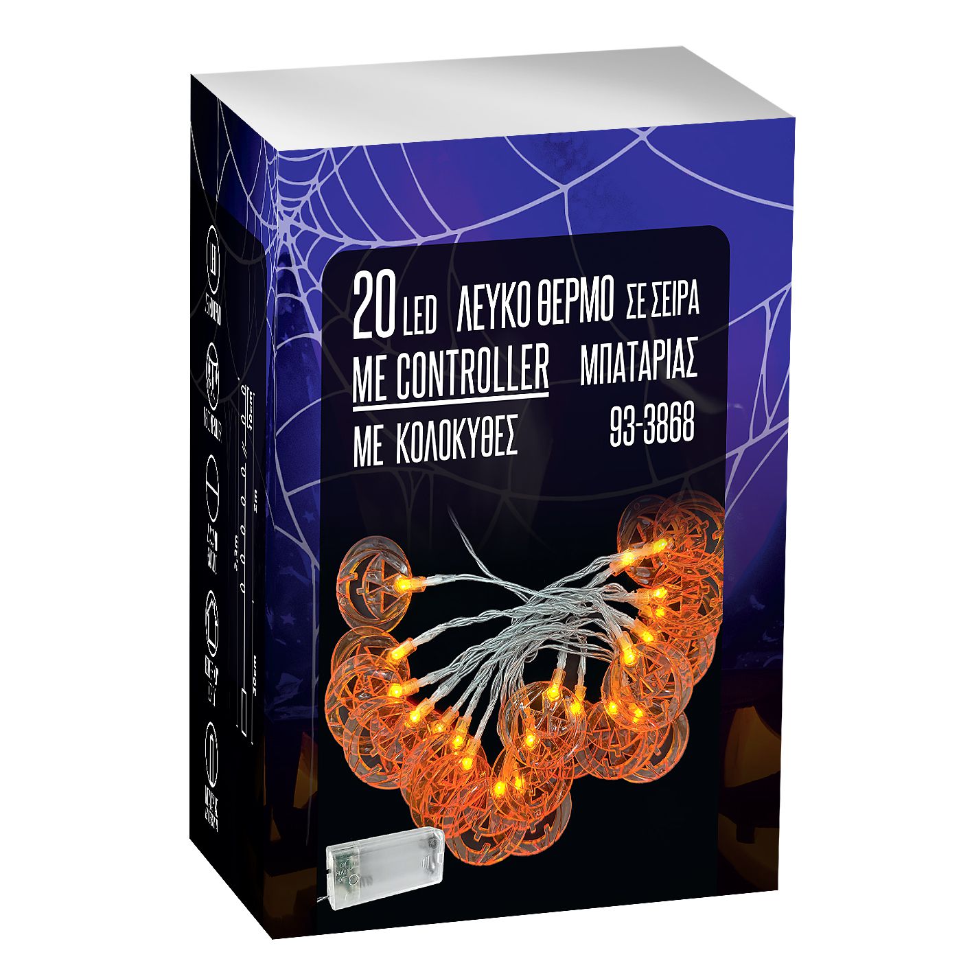 20 Λαμπάκια LED Μπαταρίας Κολοκύθες Λευκό Θερμό με Controller IP20 2,3m Xmasfest 1133888