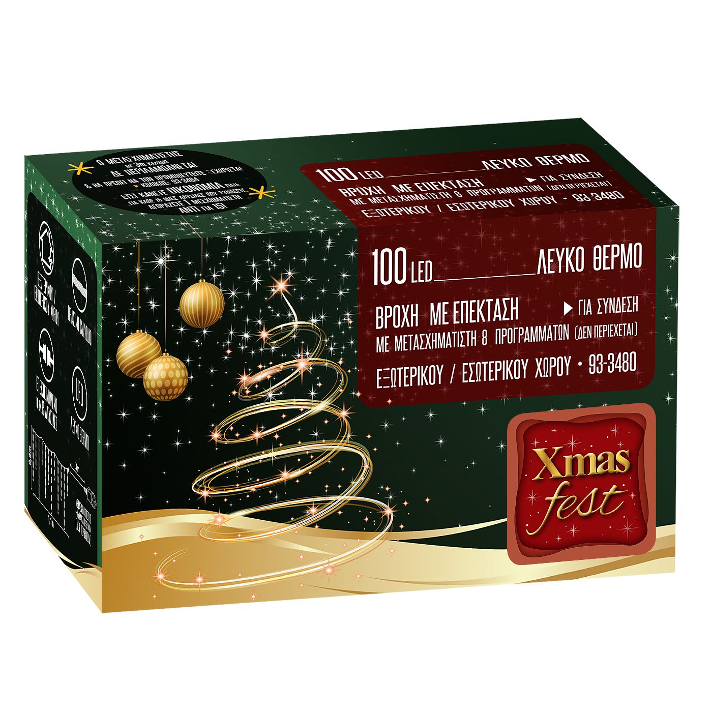 100 Λαμπάκια LED Λευκό Θερμό Βροχή με Επέκταση & Προγράμματα IP44 110x80cm (δεν Περιέχεται ο Μετασχηματιστής) Xmasfest 1133500