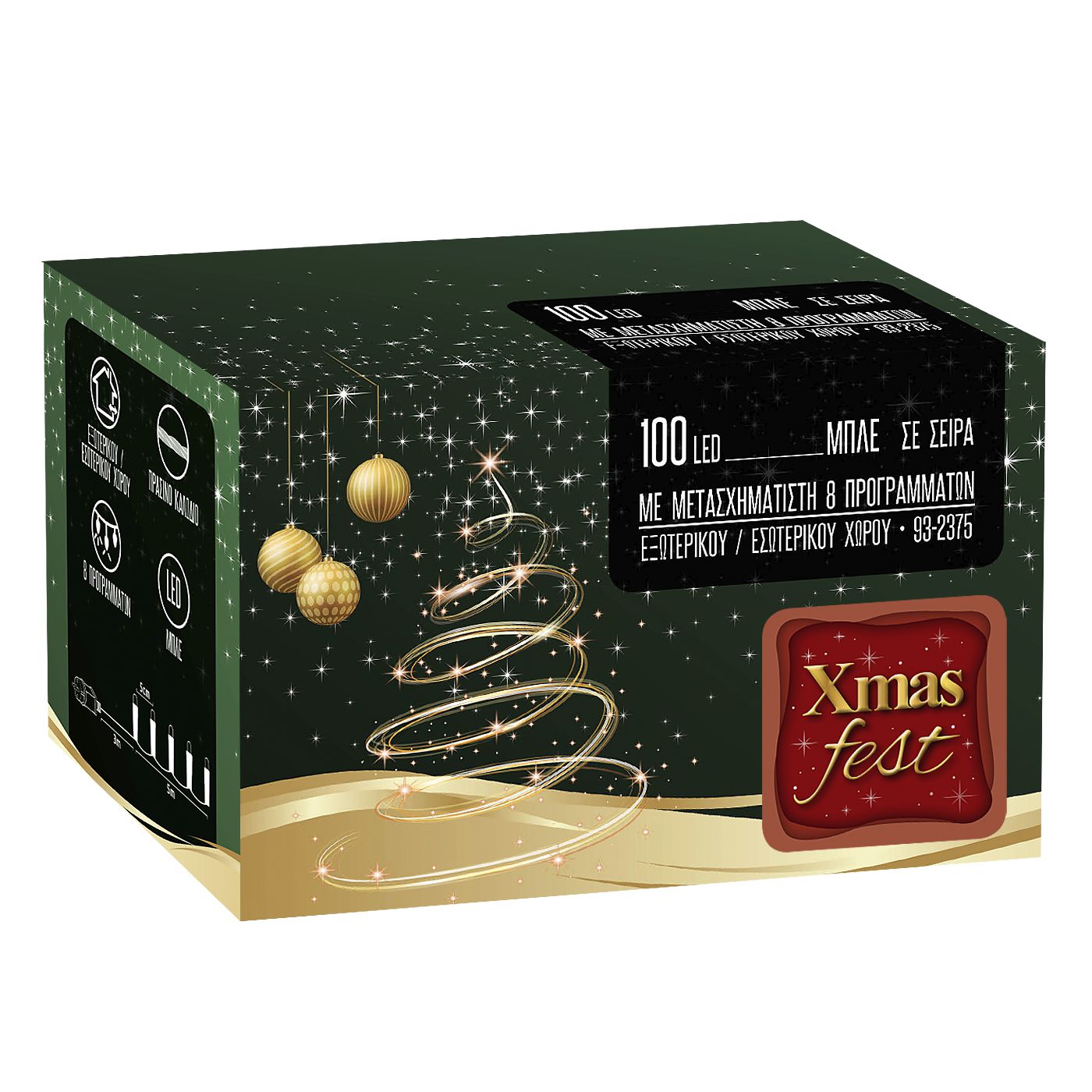 100 Λαμπάκια led Μπλε σε Σειρά με Προγράμματα Ip44 8,2m 8m Xmasfest 1132395