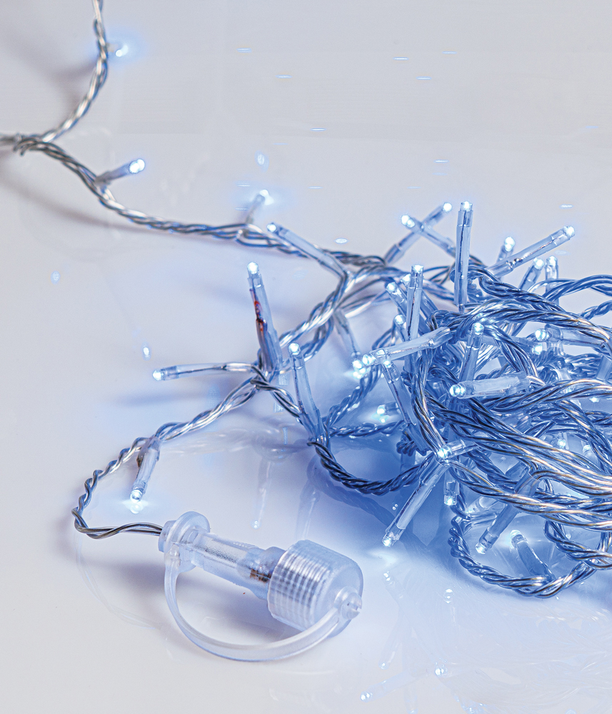 100Led Λαμπάκια Με Επέκταση,Πρόγραμμα Και Μετασχηματιστή Ip44 ,Διάφανο Καλώδιο/Μπλέ Λαμπάκι ,(5cm Απόσταση) 5 Μέτρα