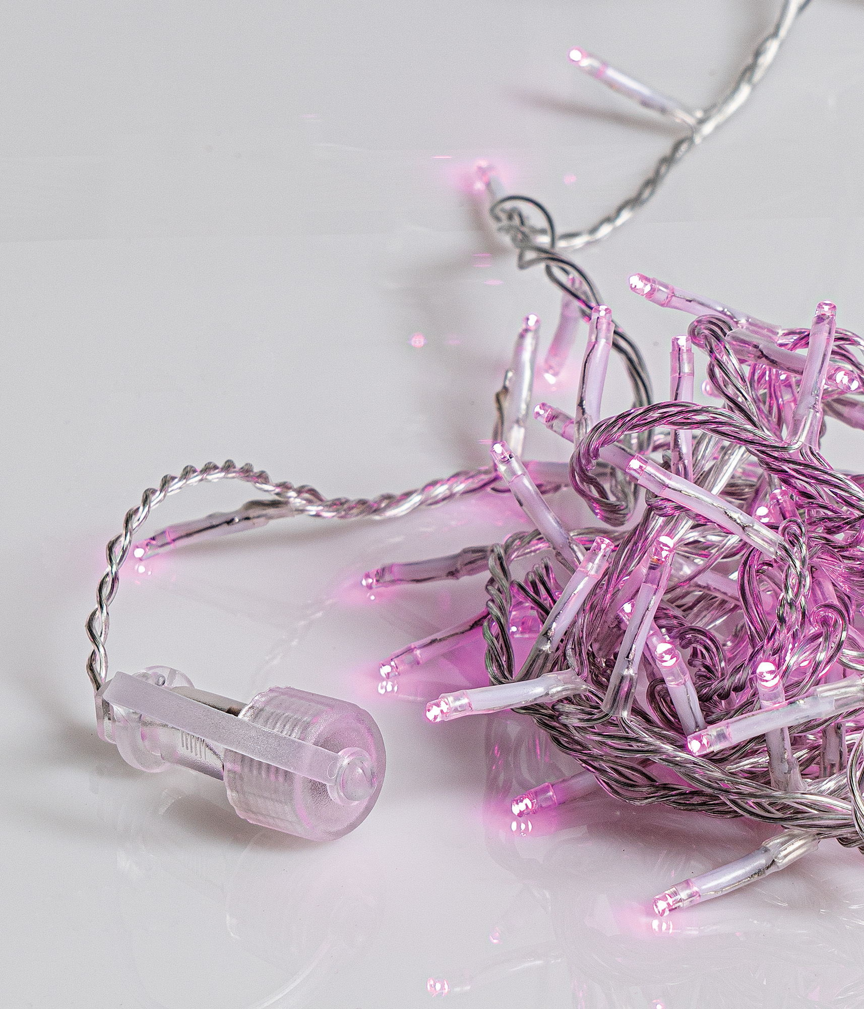 100Led Λαμπάκια Με Επέκταση,Πρόγραμμα Και Μετασχηματιστή Ip44 ,Διάφανο Καλώδιο/Ρόζ Λαμπάκι ,(5cm Απόσταση) 5 Μέτρα
