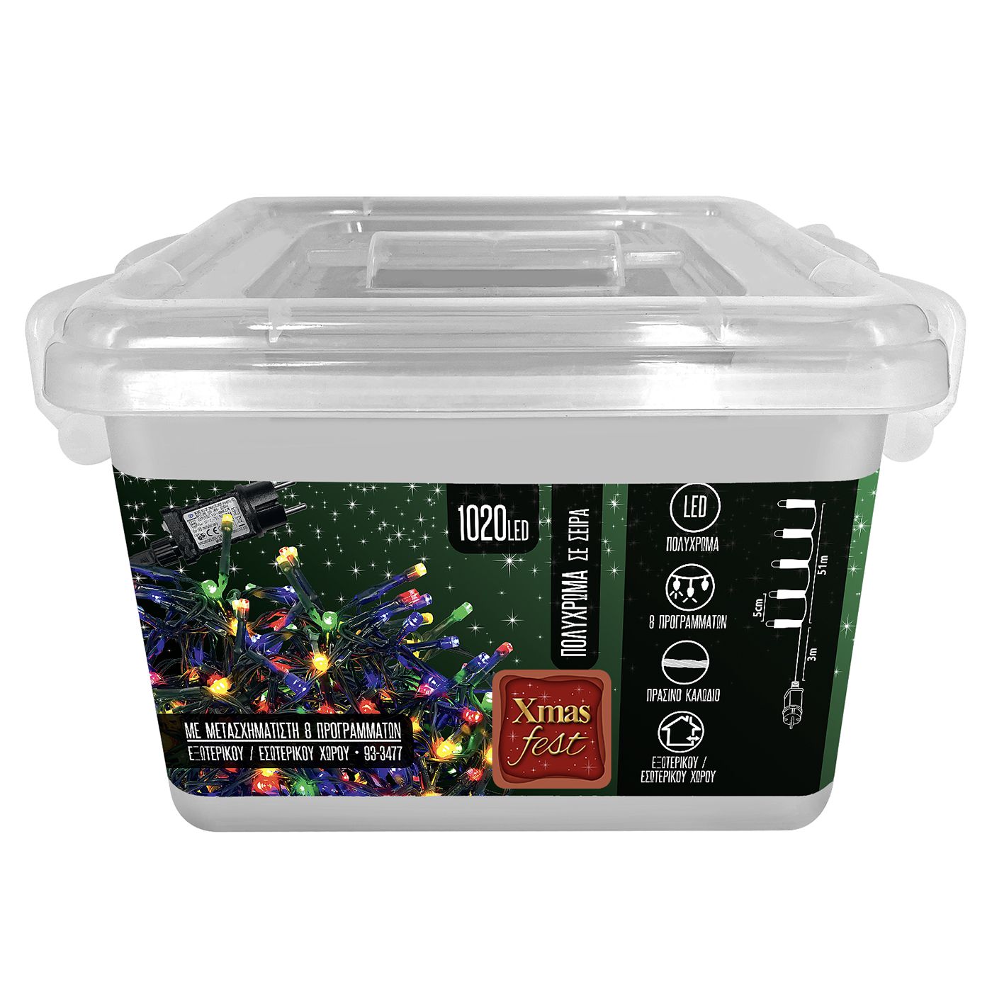 1020 Λαμπάκια LED Πολύχρωμα σε Σειρά με Προγράμματα IP44 54m Xmasfest 1133497