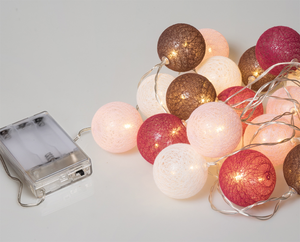 10Led Φωτάκια Σταθερά Με Μπάλες Cotton 6cm Μπαταρίας ΑΑ Με Θερμό Φωτισμό 1,5 Μέτρα