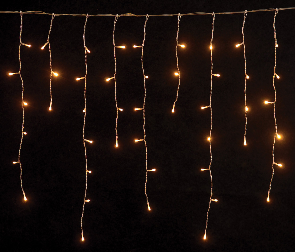 144Led Σταθερή Ασύμμετρη Κουρτίνα Με Επέκταση Και Μετασχηματιστή Ip44, 300 x 70(h)cm,Διάφανο Καλώδιο/ Θερμό (Amber) Λαμπάκι (Kelvin: 2.100 - 2.300)