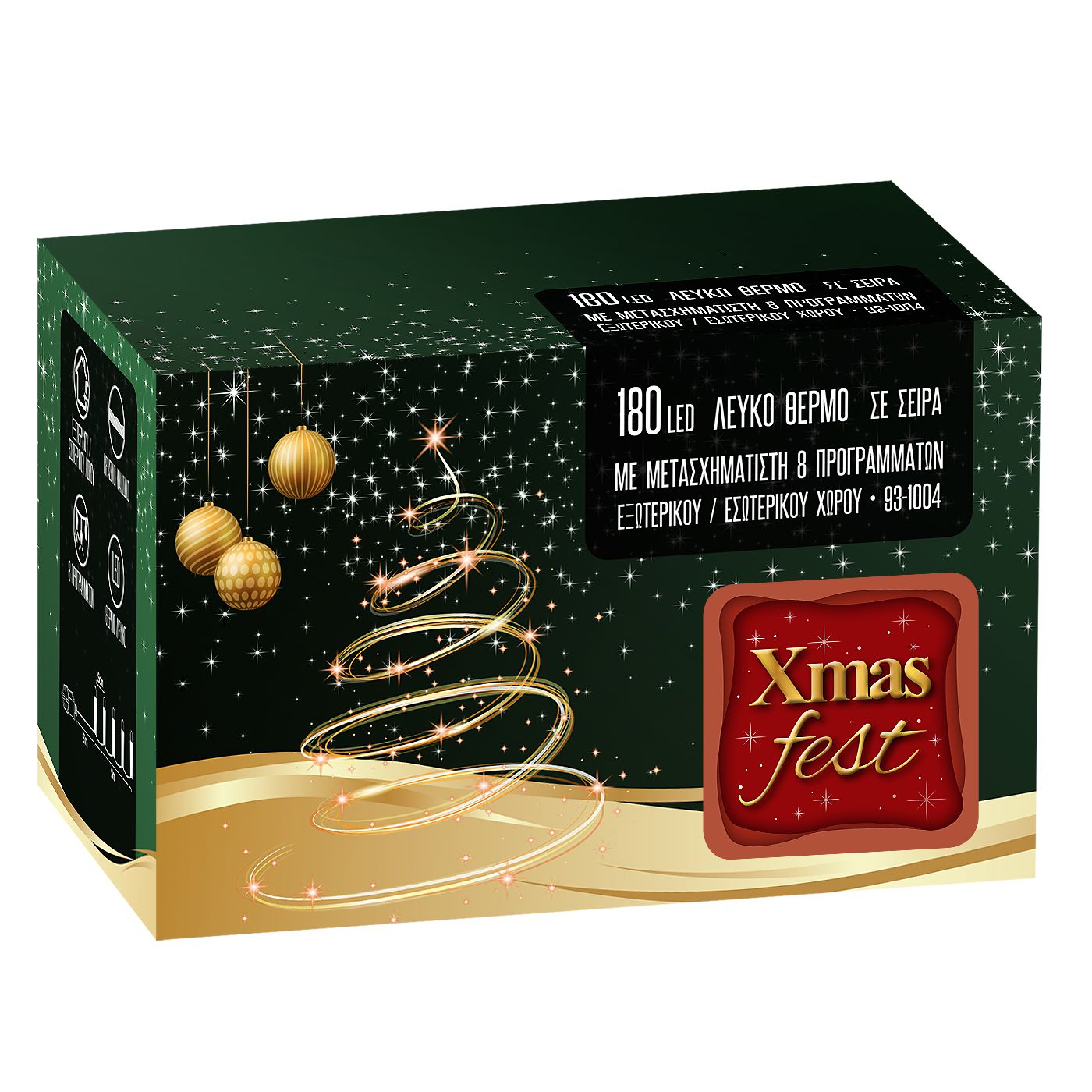180 LED λευκό θερμό με controller 8 προγραμμάτων. Για εξωτερικό & εσωτερικό χώρο. Με πράσινο καλώδιο. Περιέχεται ο μετασχηματιστής IP44 12m