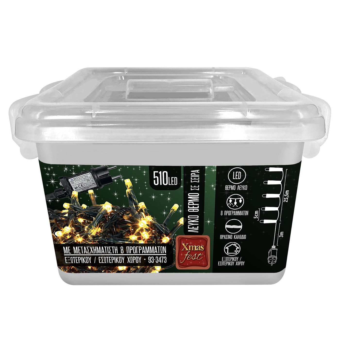 510 Λαμπάκια LED Λευκό Θερμό σε Σειρά με Προγράμματα IP44 28,5m Xmasfest 1133493