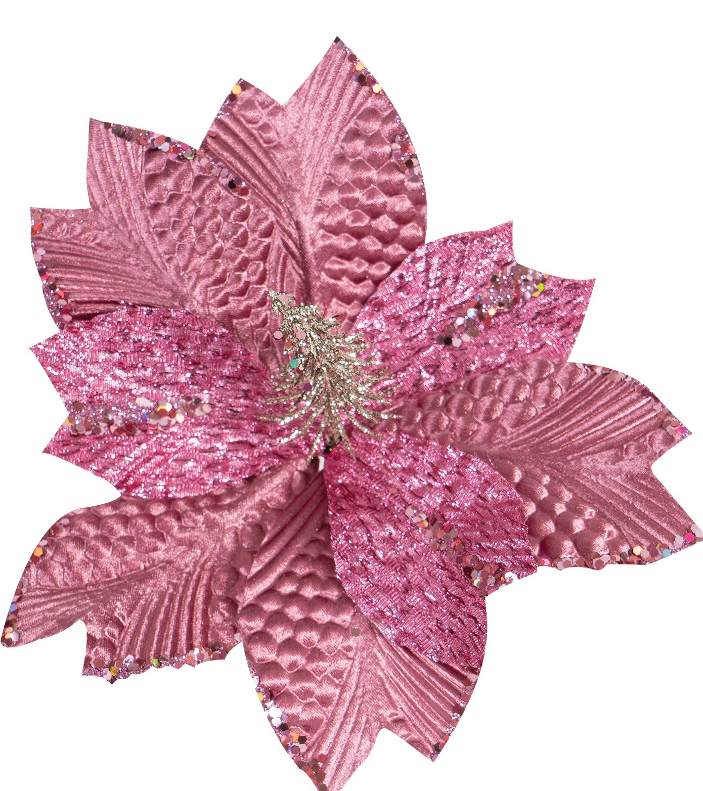 Ρόζ Χριστουγεννιάτικο Διακοσμητικό Λουλούδι 25cm