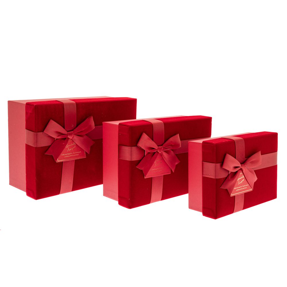 ΣΕΤ 3 ΚΟΚΚΙΝΟ ΒΕΛΟΥΔΙΝΟ ΚΟΥΤΙ ΔΩΡΟΥ ΜΕ ΦΙΟΓΚΟ 23Χ16Χ10 20Χ14Χ8,5 17Χ12,5Χ7ΕΚ