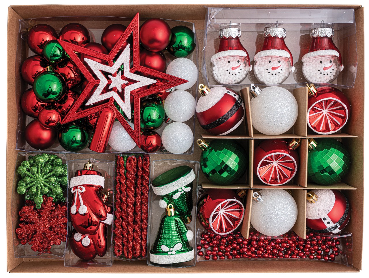 Σέτ 86 Τεμαχίων Κόκκινα Λευκά Πράσινα Διακοσμητικά Στολίδια 3-12cm Και Κορυφή 16cm