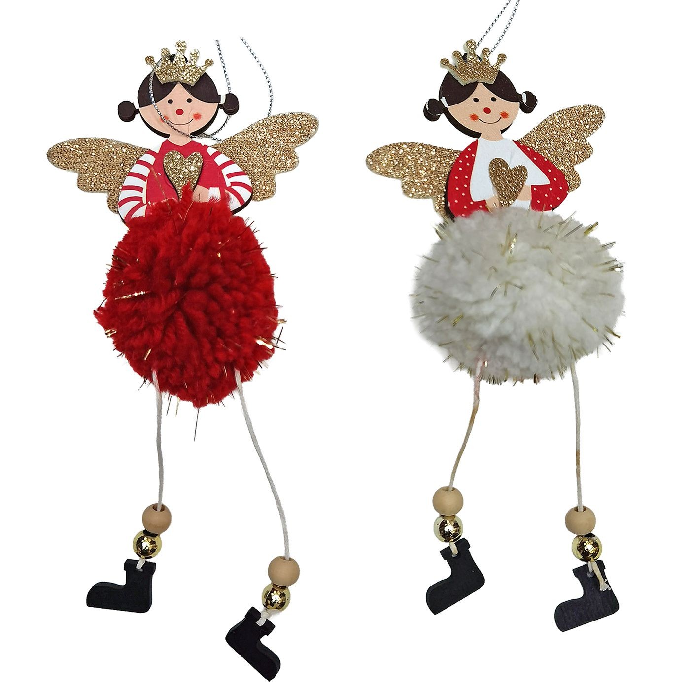 Στολίδι Ξύλινο Αγγελάκι με Φουντωτή Μπάλα 20x9cm Xmasfest 1134031