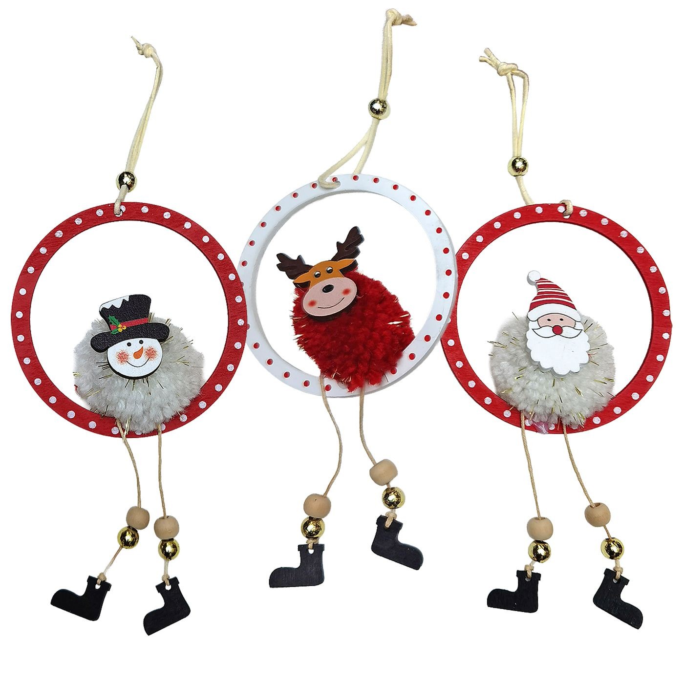 Στολίδι Ξύλινο Μπάλα με Φουντωτή Μπάλα Μέσα 18x10cm Xmasfest 1134034