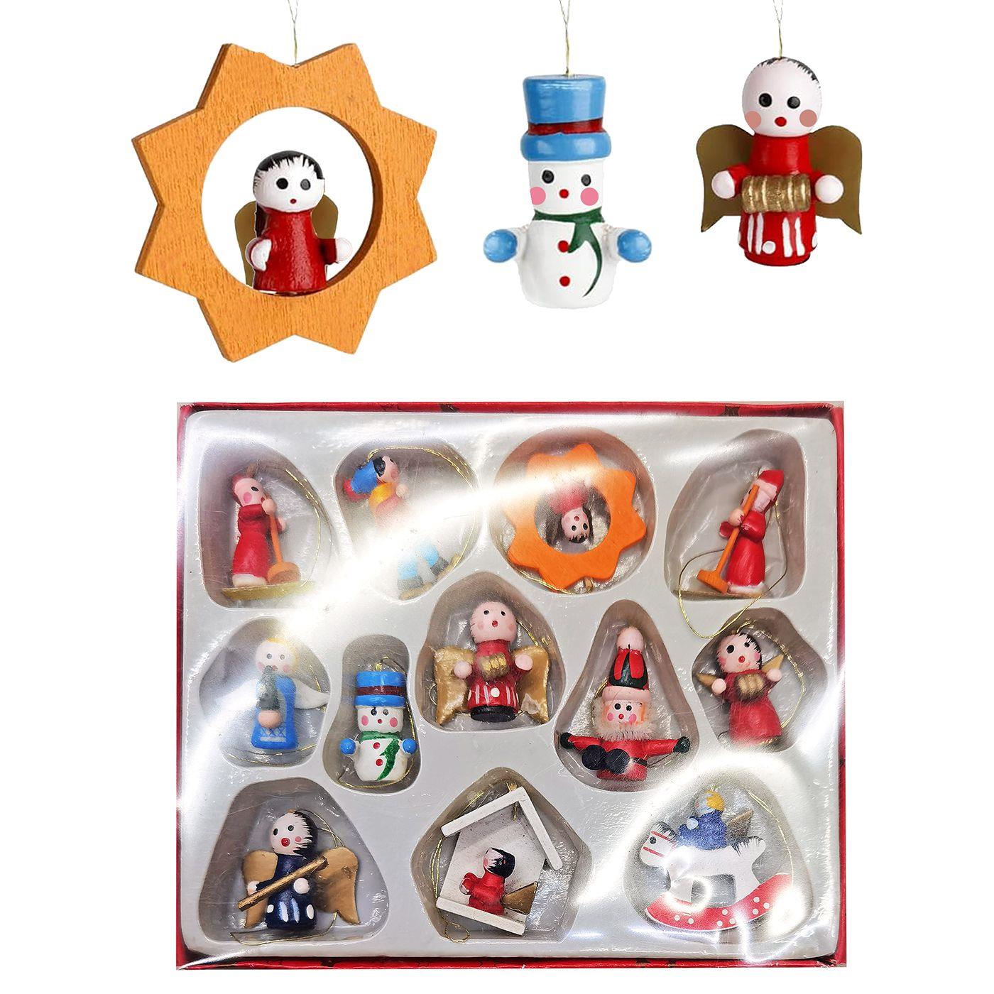 Σετ=12 τεμ ξύλινα κρεμαστά στολίδια Στολίδι=3,5cm, σετ=16x14cm