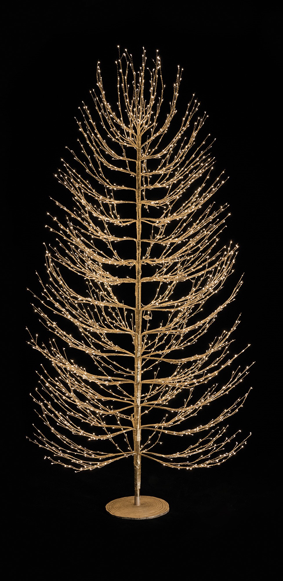 Χρυσό Φωτιζόμενο Δέντρο Με 2000 Led Φωτάκια Θερμού Φωτισμού ,Μετασχηματιστή ip44 Και Dimmer 180(h)cm