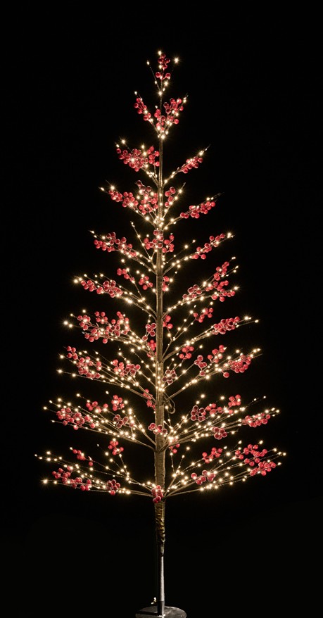 Μάυρο Φωτιζόμενο Δέντρο Με Κόκκινο Γκί Και 635Led Copper Φωτάκια Με Θερμό Φωτισμό ,Με Μετασχηματιστή ip44 150(h)cm