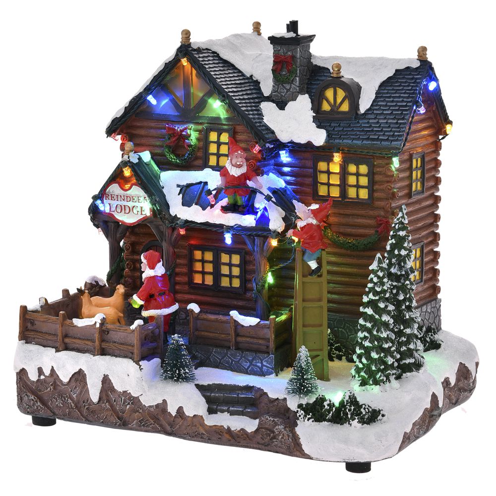 Χριστουγεννιάτικο φωτιζόμενο σπιτάκι με Αι Βασίλη και ελαφάκια. Εχει φως και μουσική με 8 τραγούδια. Η μουσική έχει κουμπί On/Off.
