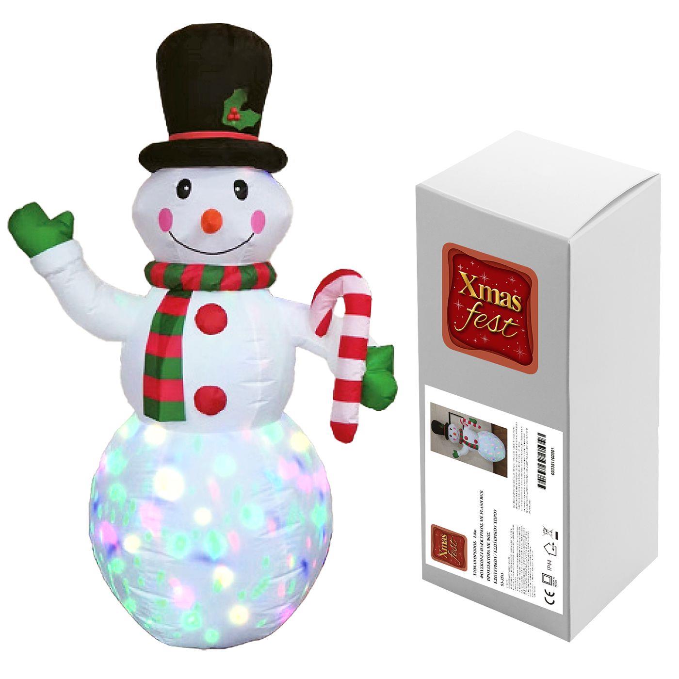 Χιονάνθρωπος 1,8m Φουσκώνει-Ηλεκτρικός με Προτζέκτορα Ip44 Xmasfest 1133531