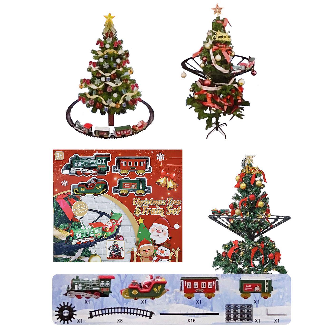 Τρένο μπαταρίας:με φως, ήχο. Με βάση στήριξης σε χριστουγεννιάτικο δέντρο. 49x43x6cm ράγες= ø80cm