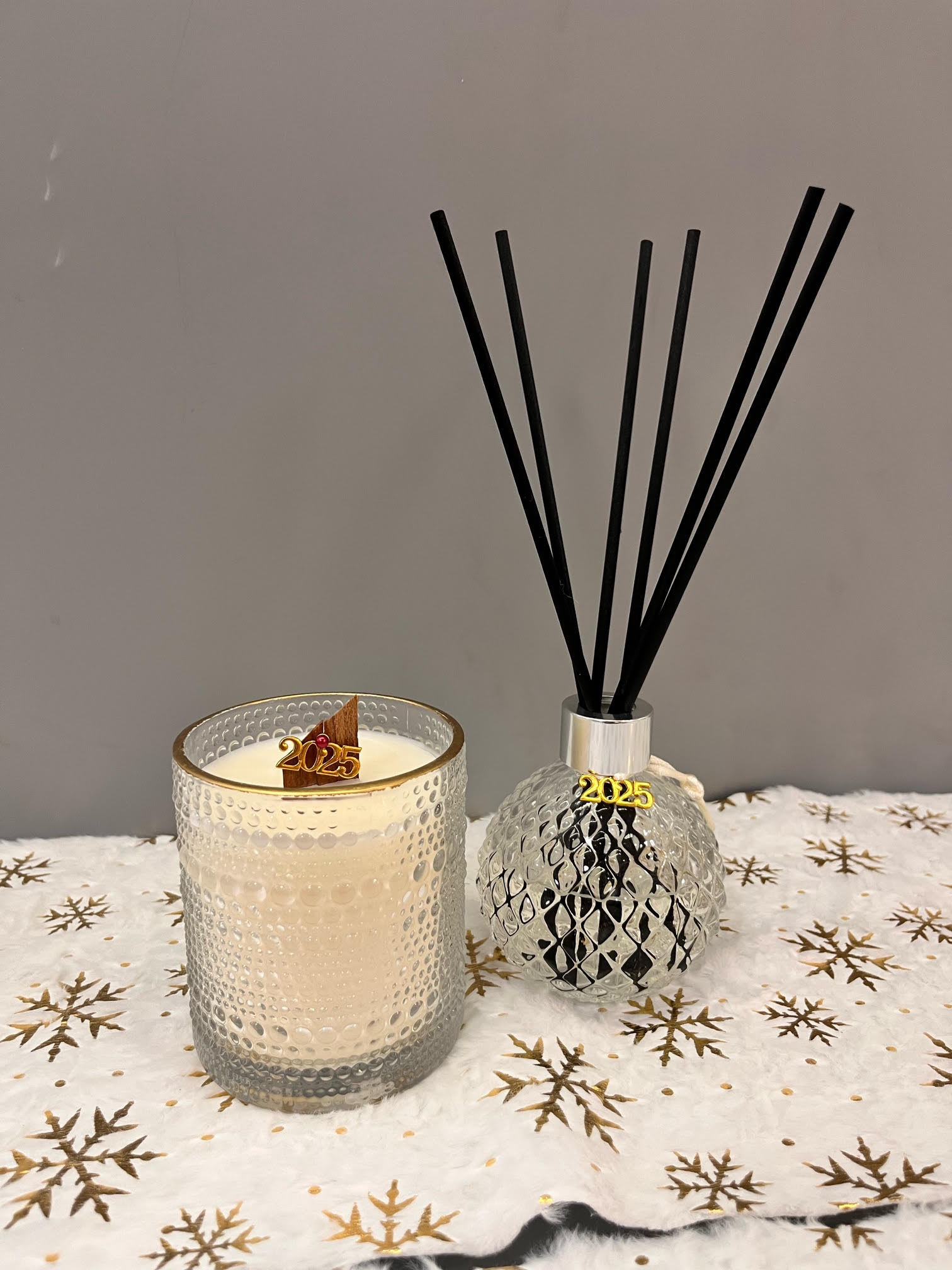 Στην προσπάθεια μας να σας δίνουμε φρέσκιες και εκπλεπτυσμένες ιδέες για τη χριστουγεννιάτικη διακόσμησή σας αλλά και για τα δώρα σας στα αγαπημένα πρόσωπά σας, σχεδιάσαμε αυτή τη σειρά η οποία περιλαμβάνει συνδυασμός κεριού και αρωματικού χώρου (τα προϊόντα πωλούνται και μόνα του στο site μας).