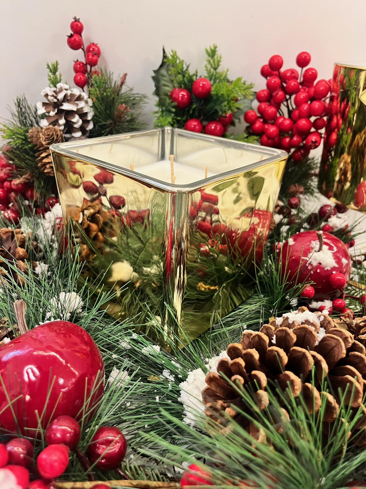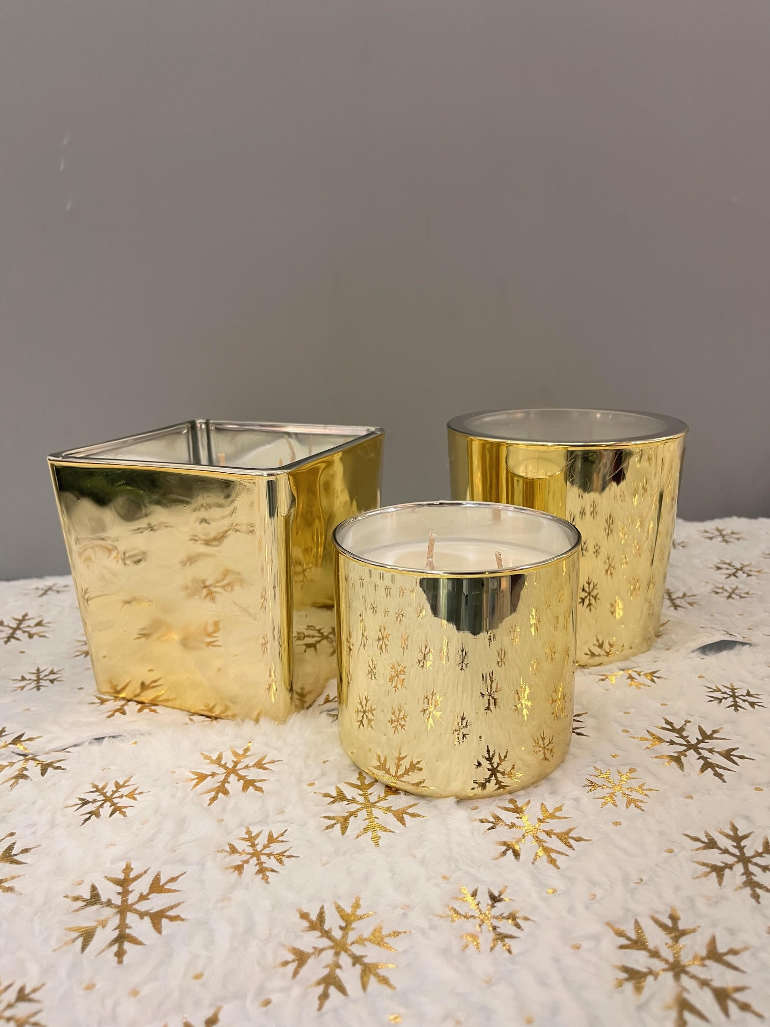 Άλλη μια εντυπωσιακή πρόταση για τις γιορτινές ημέρες. Ποτήρι με εμφάνιση χρυσού καθρέφτη γεμισμένο με 750gr κερί για να προσθέσει μια νότα πολυτέλειας στο χώρο σας με το χρώμα των Χριστουγέννων. Ιδανική επιλογή δώρου πάντα συσκευασμένο με τη φροντίδα μας έτοιμο να προσφερθεί στους φίλους και στους αγαπημένους σας.