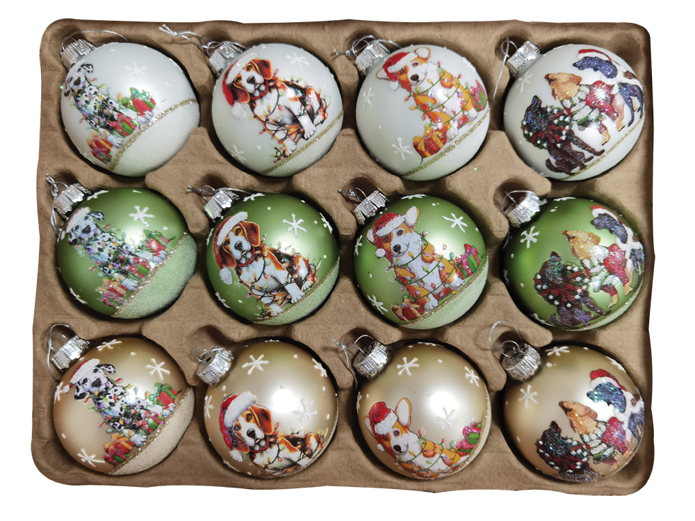 Γυάλινες Χριστουγεννιάτικες Μπάλες Σέτ 12τεμαχίων , 12 Σχέδια 8cm