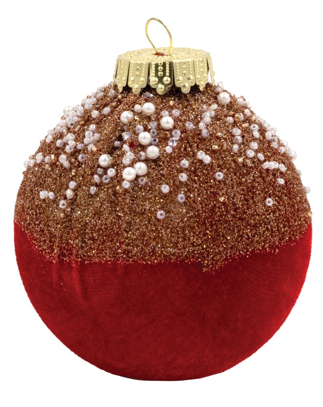 Κόκκινη Βελουτέ Πλαστική Χριστουγεννιάτικη Μπάλα 10cm,Σέτ/4 Τεμαχίων