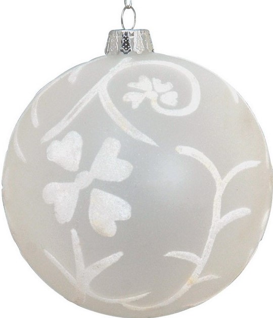Λευκή Γυάλινη Χριστουγεννιάτικη Μπάλα 10cm,Σέτ/2