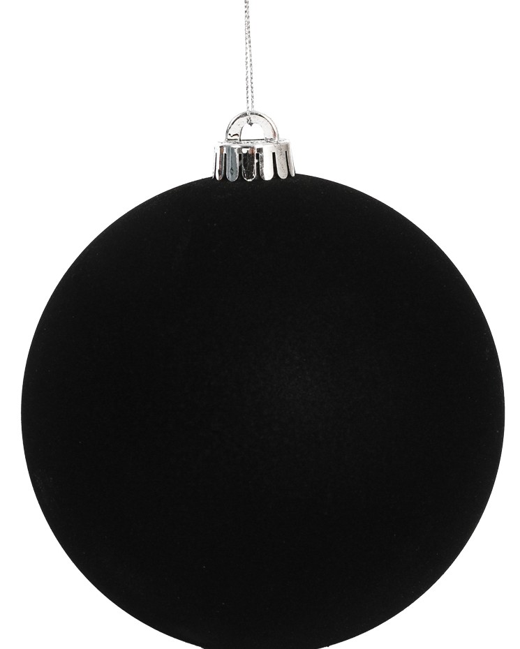 Μάυρη Βελουτέ Πλαστική Χριστουγεννιάτικη Μπάλα 10cm,Σέτ/4 Τεμαχίων