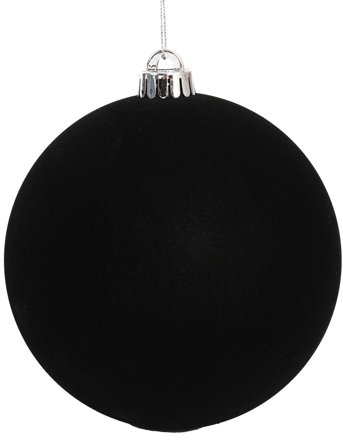 Μάυρη Βελουτέ Πλαστική Χριστουγεννιάτικη Μπάλα 8cm,Σέτ/6 Τεμαχίων