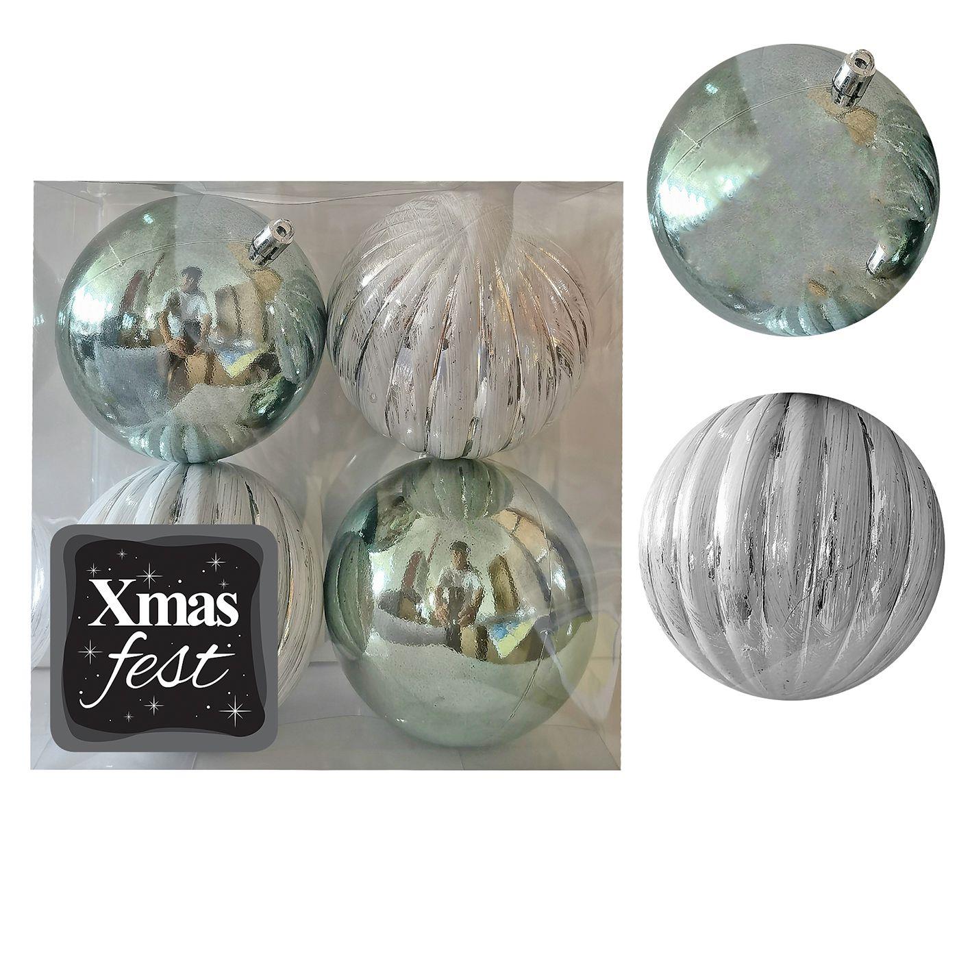 Μπάλες Ανάγλυφες Αντικέ μιξ με Γκριζοπράσινες πακ=4τεμ φ10 ø10cm Xmasfest 1133584